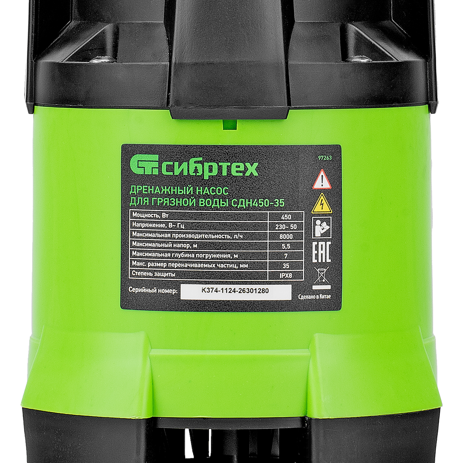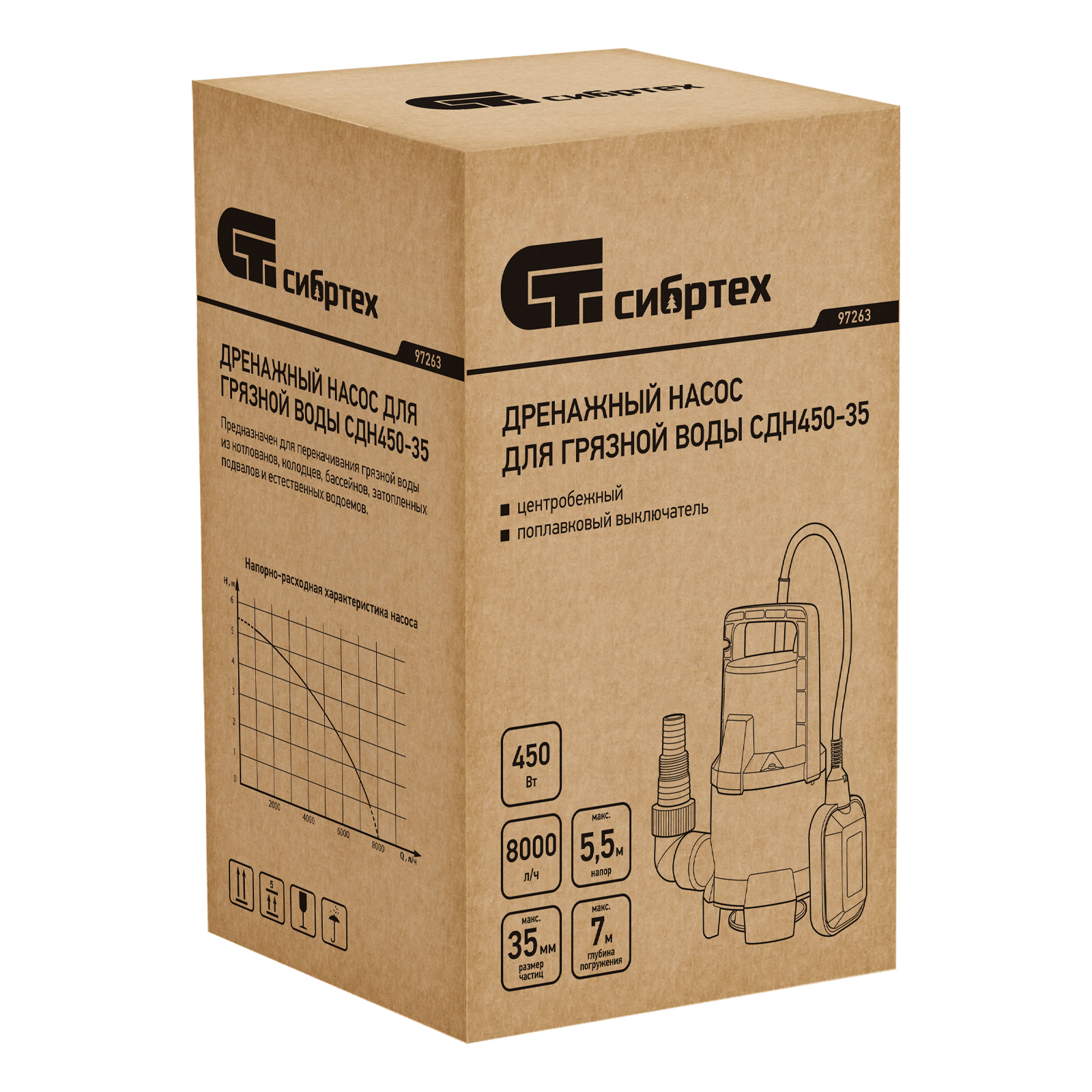 Фекальный насос СФН250, 250 Вт, напор 8 м, 10000 л/ч Сибртех в Москве
