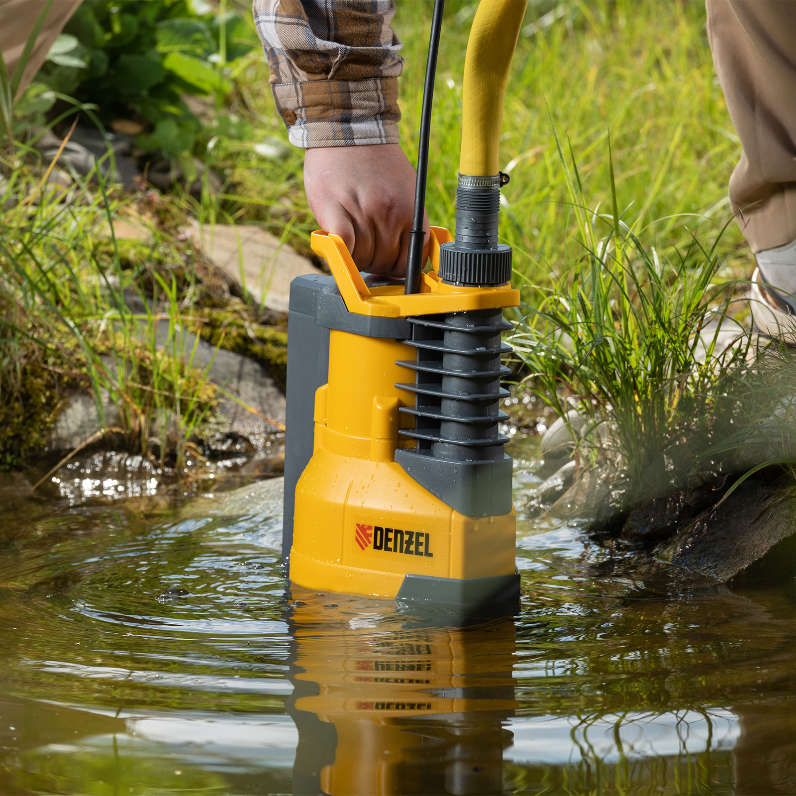 - Быстрая установка — насос опускается в вертикальном положении на глубину до 7 м с помощью троса.