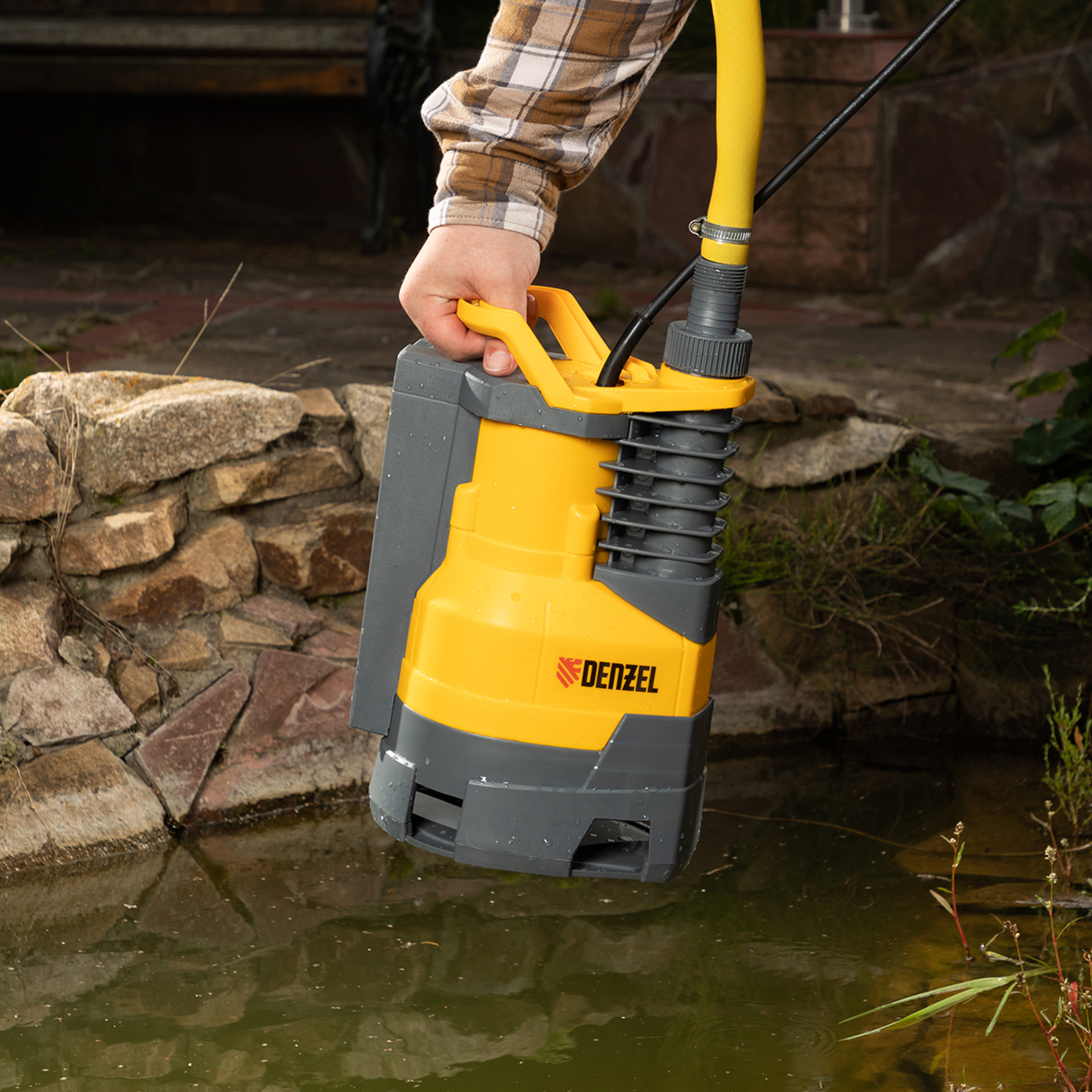 - Эргономичность — благодаря ручке в верхней части корпуса насос удобно перемещать и погружать.