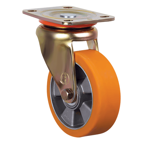 Большегрузное колесо EMES ED01 ABP 150 — это прочное долговечное изделие, для производства которого используются качественные износостойкие материалы. Обод выполнен из алюминия, защищенного от коррозионных изменений. Для изготовления шинки был выбран полиуретан — благодаря этому колесо не боится механических повреждений, не оставляет следов на поверхностях и хорошо поглощает вибрации. Широкий обод равномерно распределяет даже экстремальные нагрузки.