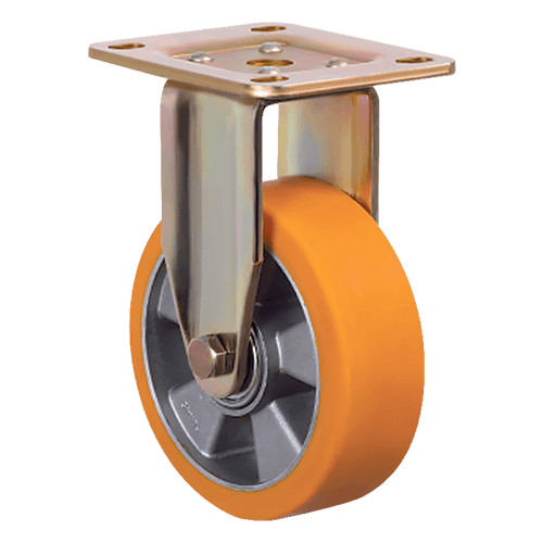 Неповоротное большегрузное колесо EMES ED02 ABP 100 подходит для установки на передвижное строительное и складское оборудование, платформенные тележки. Контактный слой из полиуретана устойчив к истиранию и механическим повреждениям. Алюминиевый обод обеспечивает эффективное распределение нагрузки. Максимальная грузоподъемность колеса составляет 250 кг. Общая высота — 140 мм.