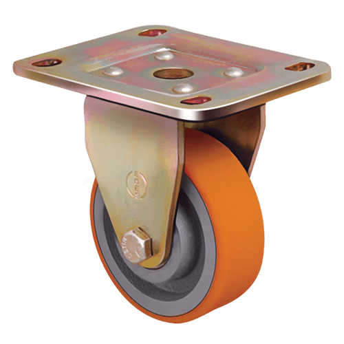 Данное большегрузное колесо подходит для установки на платформенные тележки, передвижное большегрузное оборудование. Кронштейн в модели неповоротный, для крепления предусмотрена платформа размером 70x86 мм. Материал изготовления кронштейна — оцинкованная сталь, обода — чугун. Прочная полиуретановая шинка устойчива к истиранию. Рабочий температурный диапазон — от -20 до +70 °С.