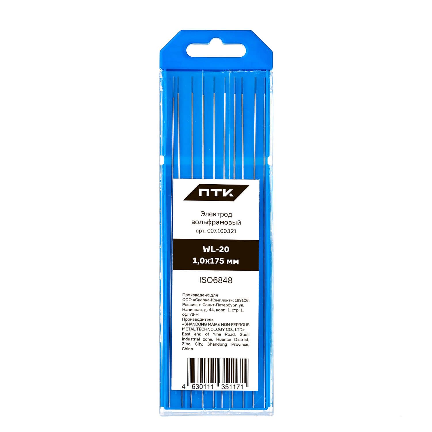 Диаметр электрода 1,0 мм, длина электрода 175 мм. Вольфрам имеет синий цветовой код. Поставляется в пластиковом пенале по 10 штук. В карточке с товаром указана цена за 1 вольфрамовый электрод.
