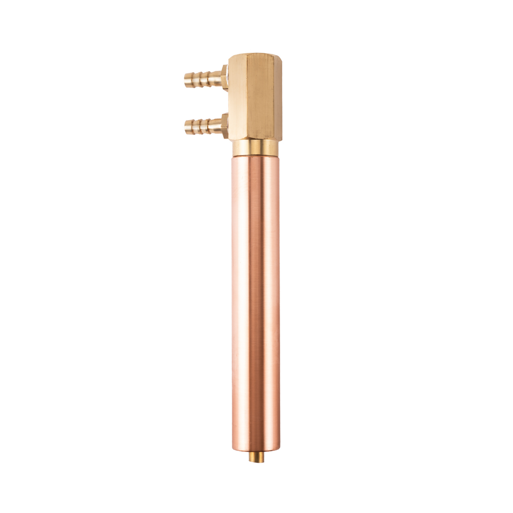 Электрододержатель предназначен для машин контактной сварки МТ-25/40/63, произведённых после 2018 года. Служит для передачи сварочного тока от плеча контактной машины на электрод, а также для охлаждения контактного электрода. Электрододержатель представляет собой трубку внешним диаметром 25 мм, с одной стороны внутренний конус для посадки электрода, с другой стороны резьба для подключения подвода охлаждения с двумя штуцерами. Состоит из медного сплава. Длина 150 мм.
