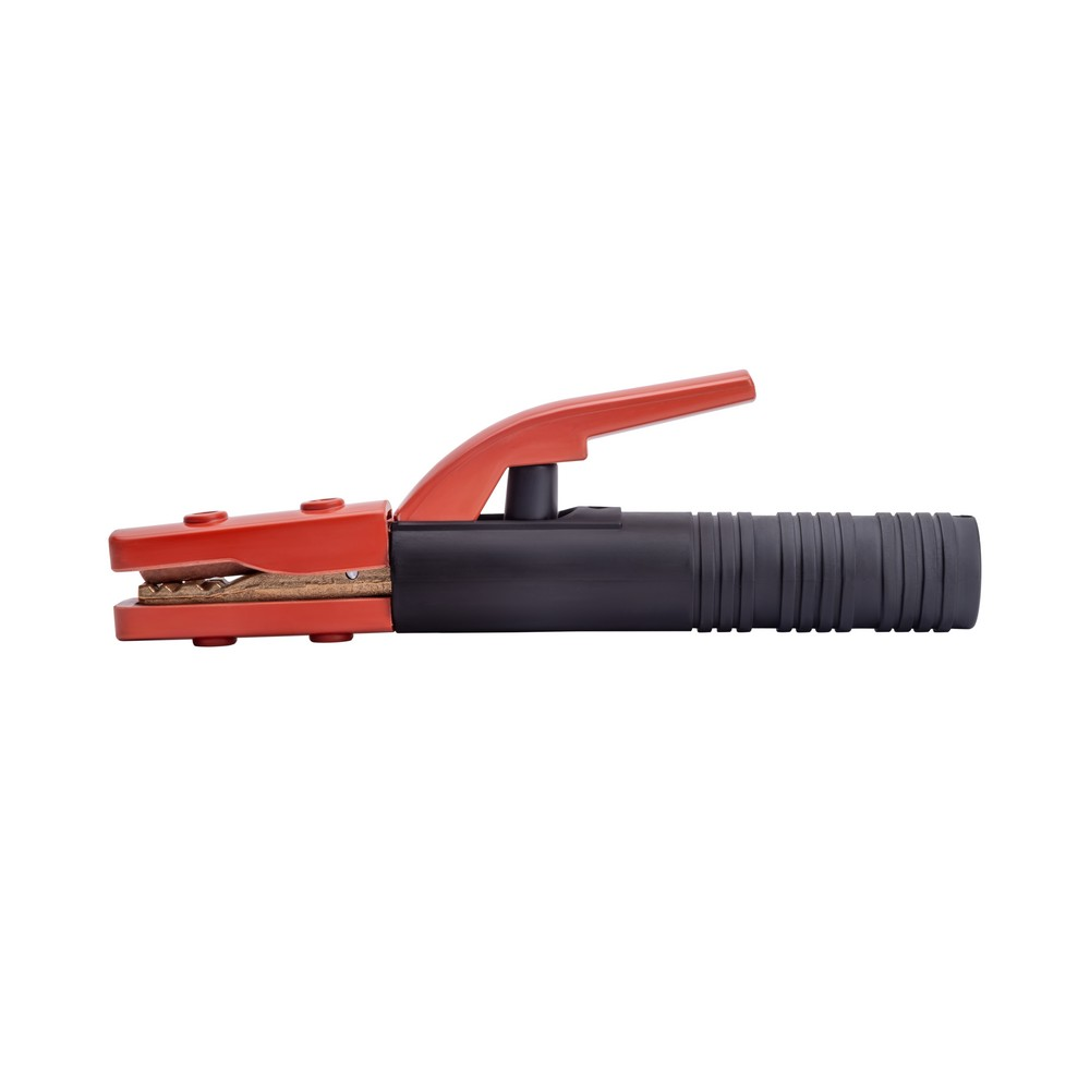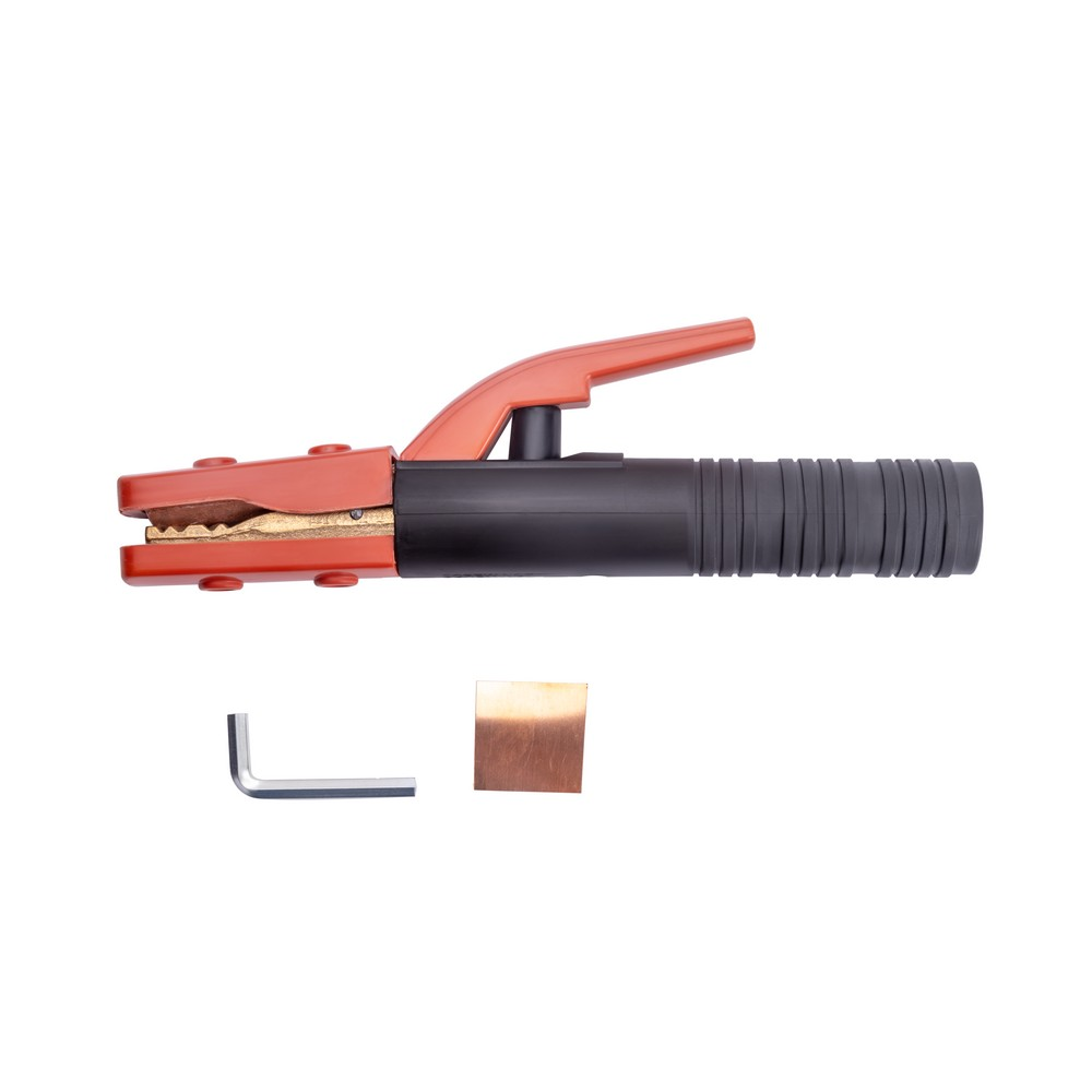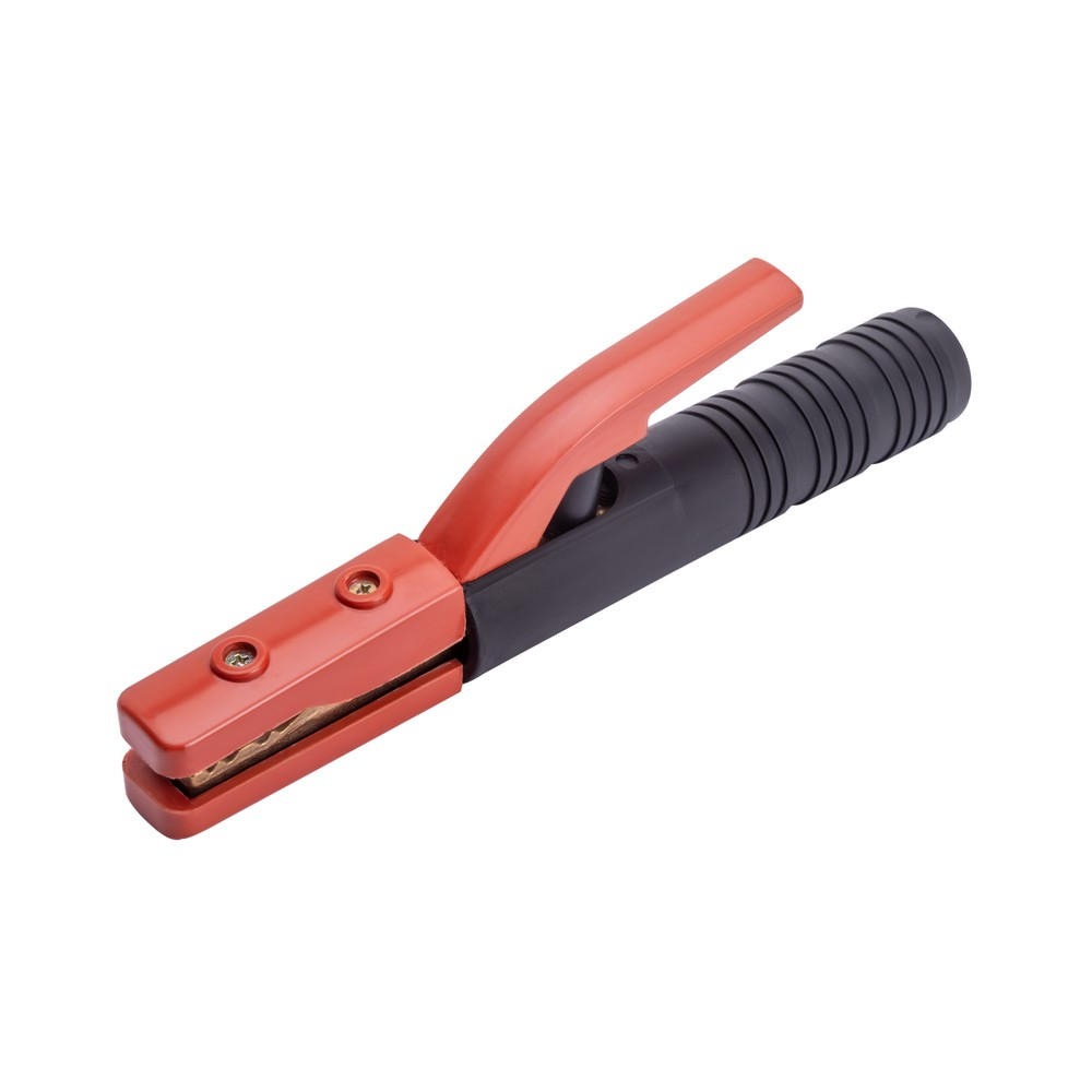 Электрододержатель EH-500A американского типа (основа зубчатых держателей сталь, покрытая медным токопроводящим сплавом) сделан из износостойких, термически стойких и прочных материалов. Область обхвата держателя ладонью сварщика имеет надёжную электроизоляцию. Покрытый электрод, имеющий основное, рутиловое или целлюлозное покрытие надёжно фиксируется при помощи мощного пружинного механизма. Механизм держателя позволяет зафиксировать сварочный электрод под углами 45°, 90°, 135°, 180°. К электрододержателю подсоединяют медный сварочной провод сечением 60 мм, алюминиевый омеднённый кабель (CCA) диаметром 95 мм. Сила фиксации электрода составляет до 25 кг/см².ЭРГОНОМИЧНОСТЬ: Эргономичная противоскользящая рукоятка хорошо лежит в руке. Термостойкий пластик обеспечивает безопасность во время рабочего процесса.ПРЕИМУЩЕСТВА:Простая, удобная и надёжная конструкцияМощный зажимной механизмНадёжная фиксация сварочного кабеляВозможность фиксации электрода в разных пространственных положенияхУстановка электрода в нескольких пространственных положениях