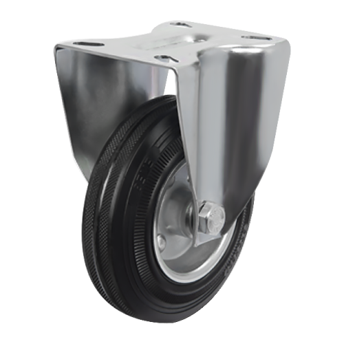 Грузоподъемность неповоротного промышленного колеса EM02SPR200 составляет 180 кг, диаметр — 200 мм. Контактный слой изготовлен из литой черной резины, обод и кронштейн — из оцинкованной стали. Роликовый подшипник в оси обладает высокой стойкостью к радиальным нагрузкам. Модель подходит для установки на различное складское и строительное оборудование, контейнеры ТБО, может использоваться на поверхностях с уклонами и неровностями, во влажной среде.