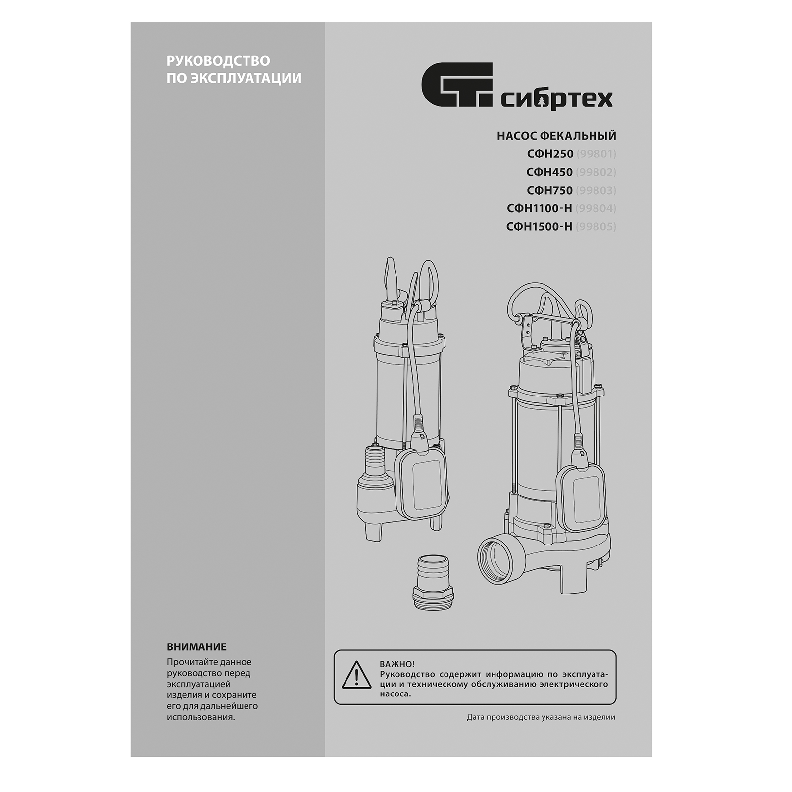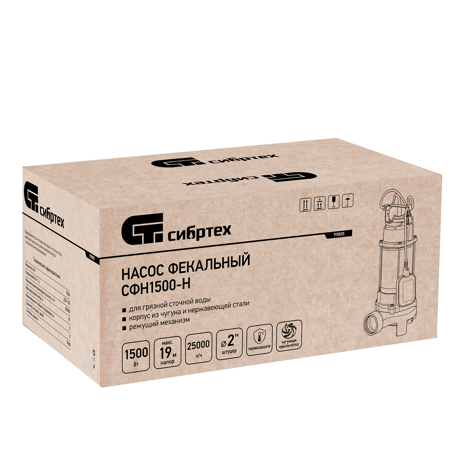 Фекальный насос СФН1500-Н, 1500 Вт, напор 19 м, 25000 л/ч, нож Сибртех в Москве