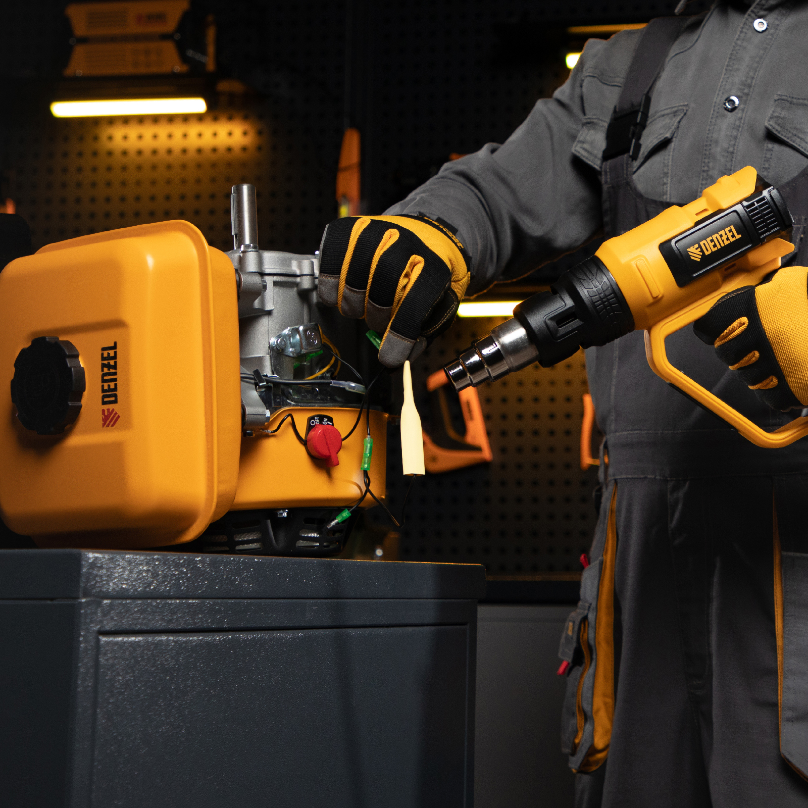 Профессиональный технический фен Denzel HG-2000E 28007 мощностью 2000 Вт, с 2 режимами и LCD дисплеем, предназначен для нагрева и сушки различных соединений и поверхностей. Применяется при снятии лакокрасочных покрытий, удалении старого линолеума и плитки, пайке металла и сварке пластика, разморозке труб, а также в процессе других задач в быту и на строительных объектах.,Высокая мощность двигателя 2 кВт обеспечивает производительность 250-500 л/мин. Максимальная рабочая температура составляет 650 ℃. Надежный и долговечный нагревательный элемент с керамическим каркасом устойчив к продолжительной эксплуатации.