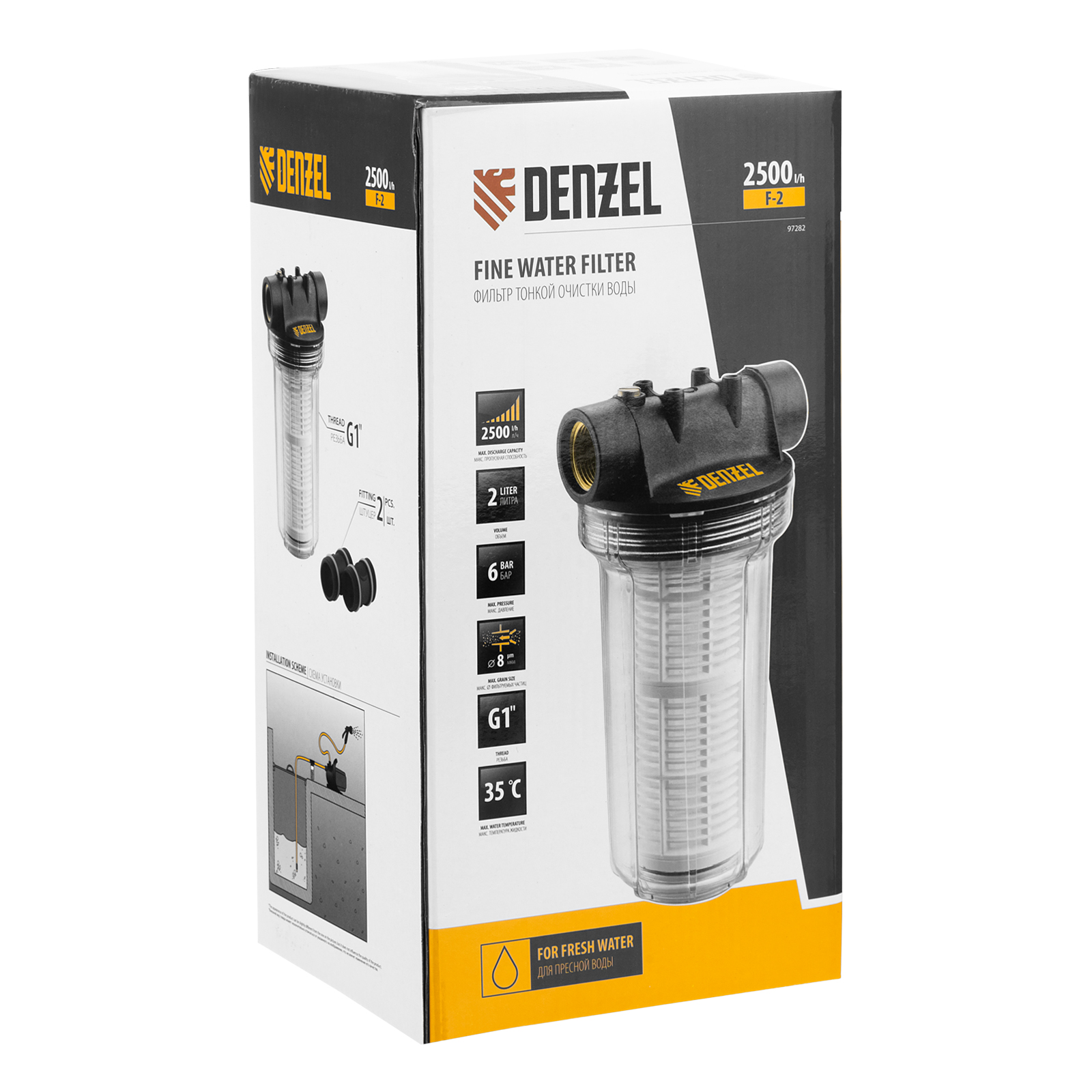 Фильтр тонкой очистки F2, объем 2 л, D 1" Denzel в Москве