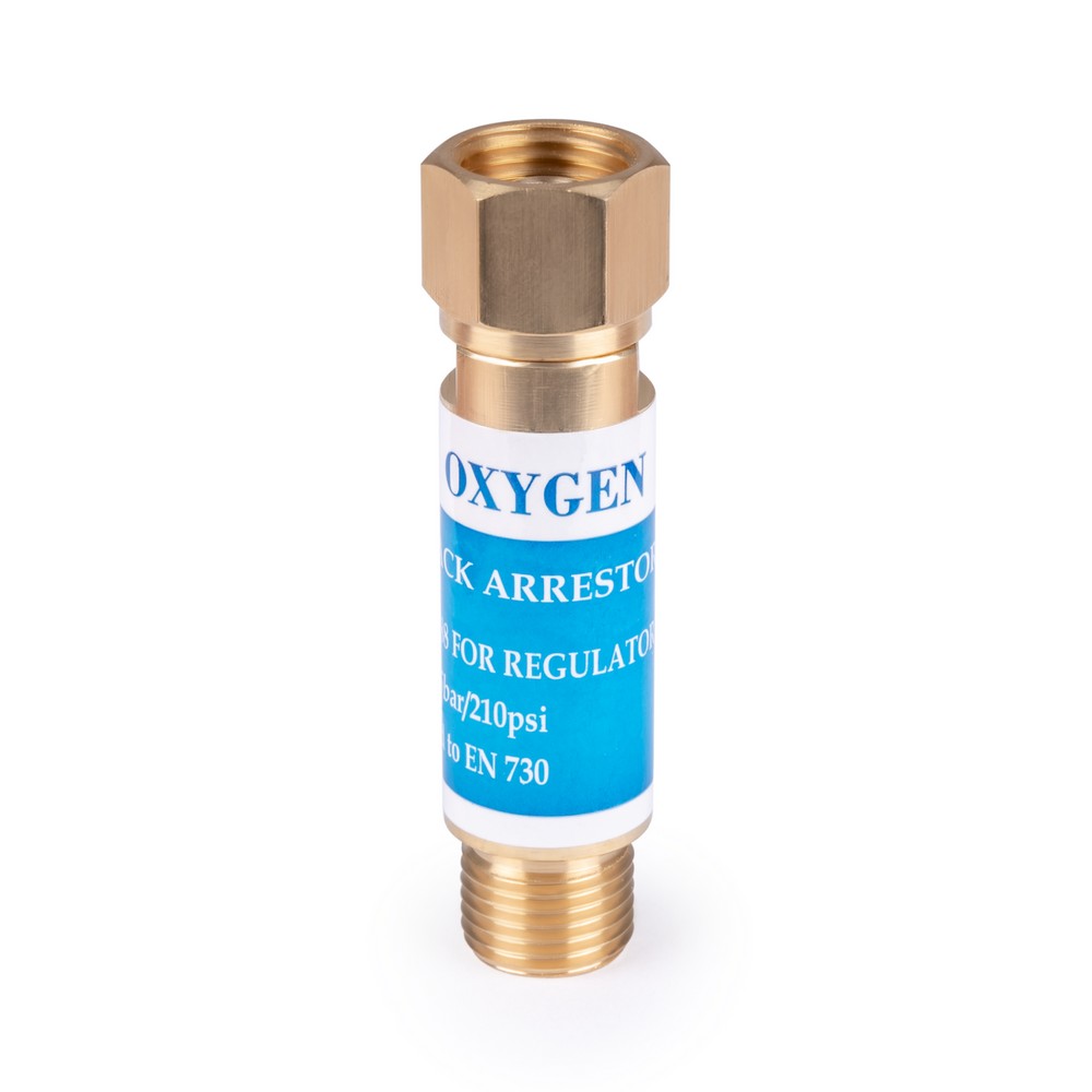 Клапан огнепреградительный предназначен для защиты от обратного потока газа, а также предотвращает разрыв резинотканевых рукавов и их возгорания в случае обратной волны давления, возникаемого в случае возгорания кислорода. Клапан устанавливается к соответствующему штуцеру на редуктор.