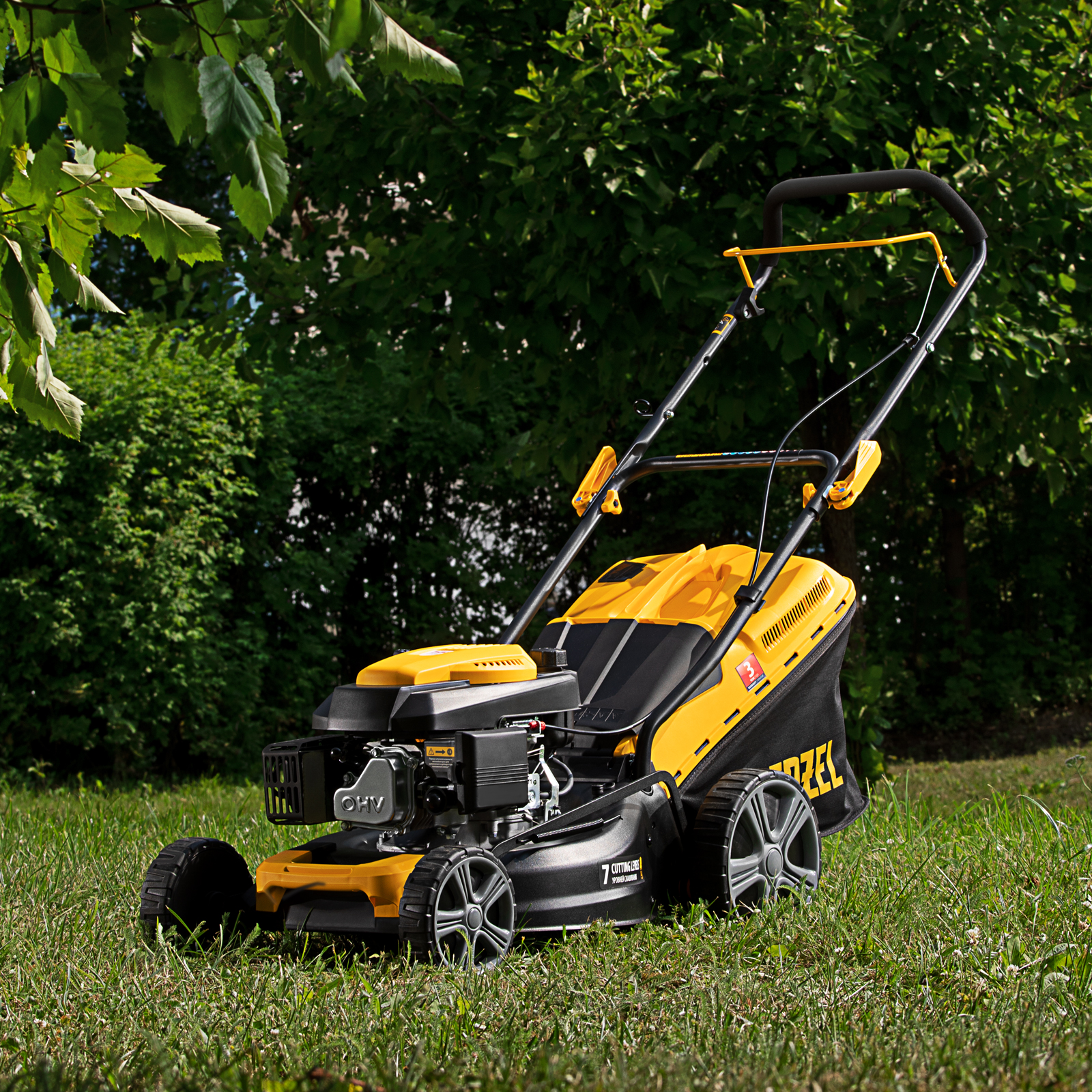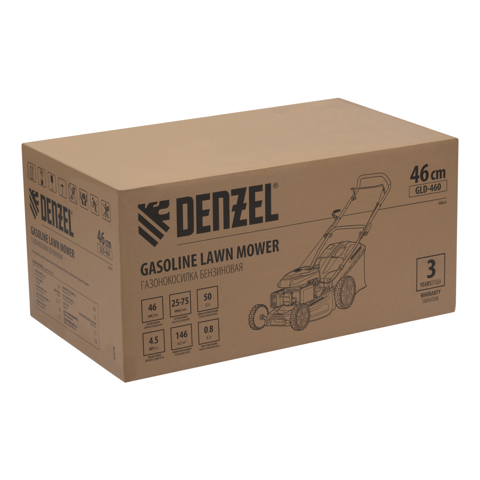 - Гарантия 3 года — качество газонокосилки Denzel подтверждено производителем.