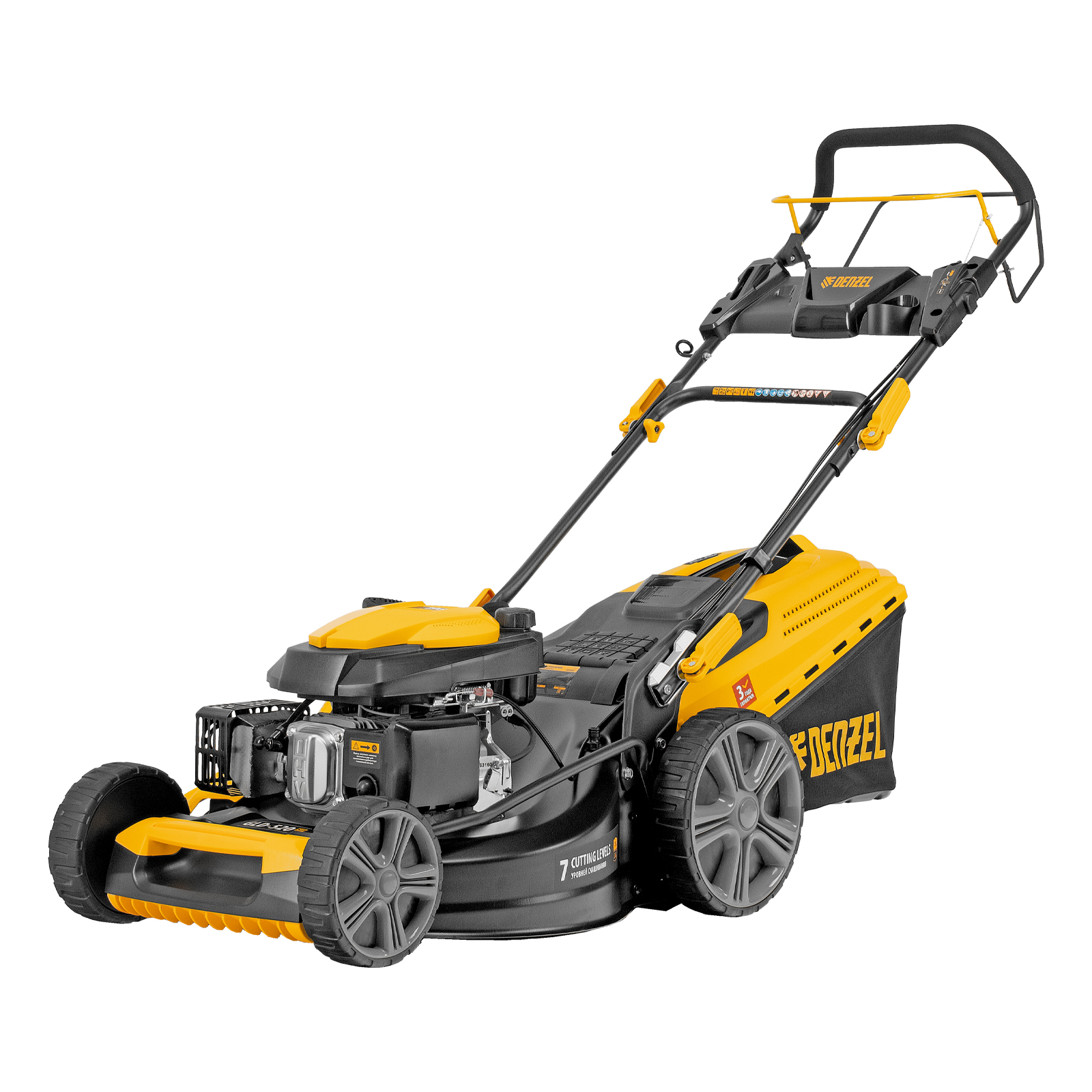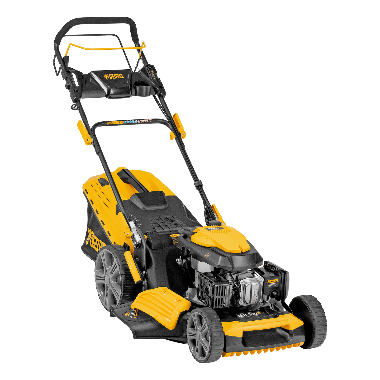 Газонокосилка бензиновая GLD-520SP, 196 куб.см, ширина 52 см, привод, 7 уровней,травосборник 60 л Denzel в Москве