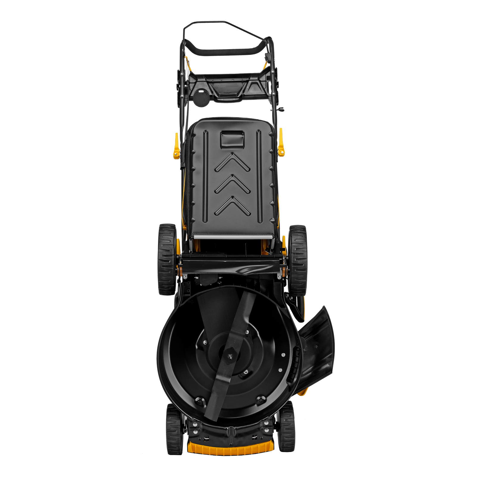 - Продуманная конструкция и стильный дизайн — оптимизированная форма деки способствует лучшему всасыванию травы, а матовая краска придает эффектности.