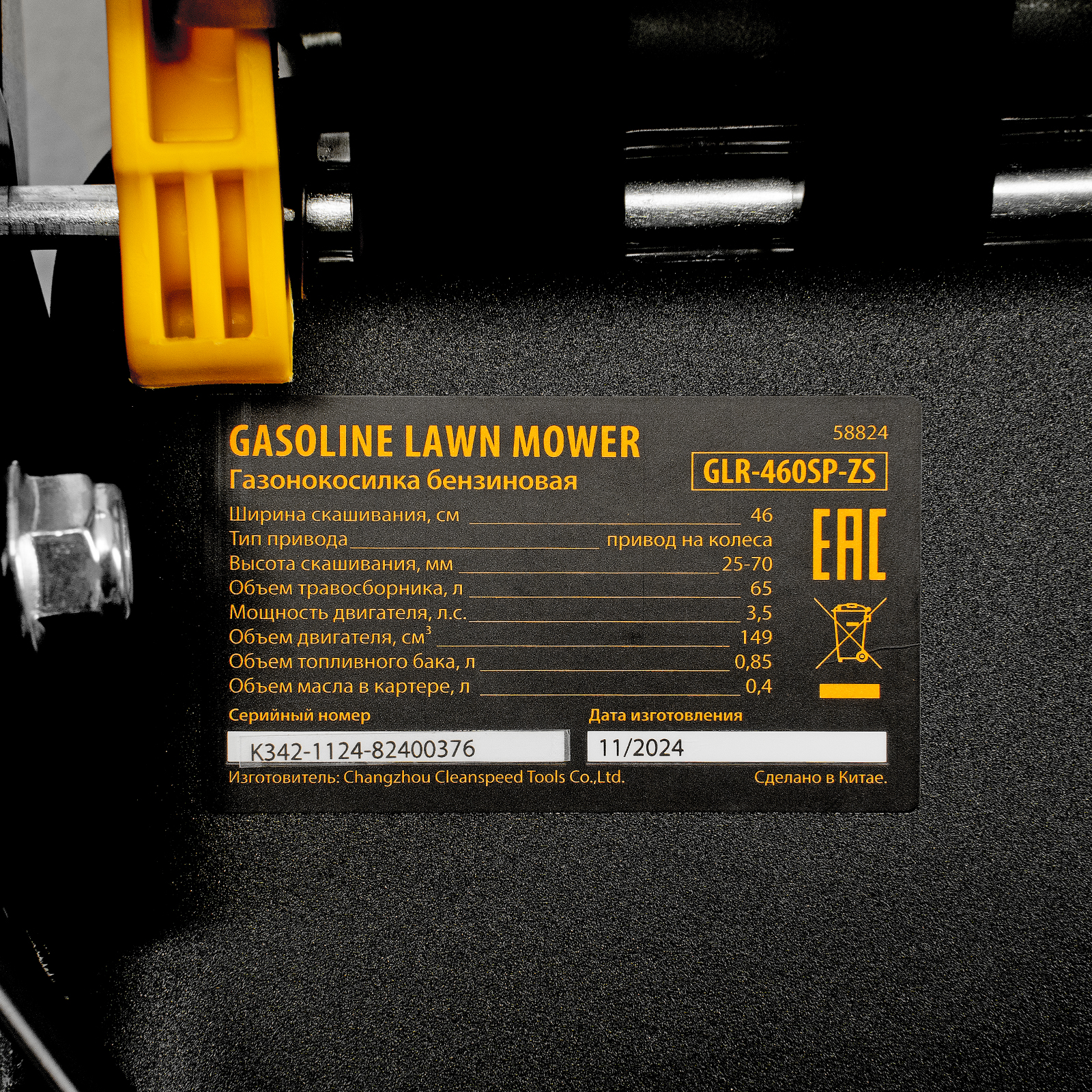 Газонокосилка бензиновая GLR-460SP-ZS, 149 см3, ширина 46 см, привод, травосборник 65 л Denzel в Москве
