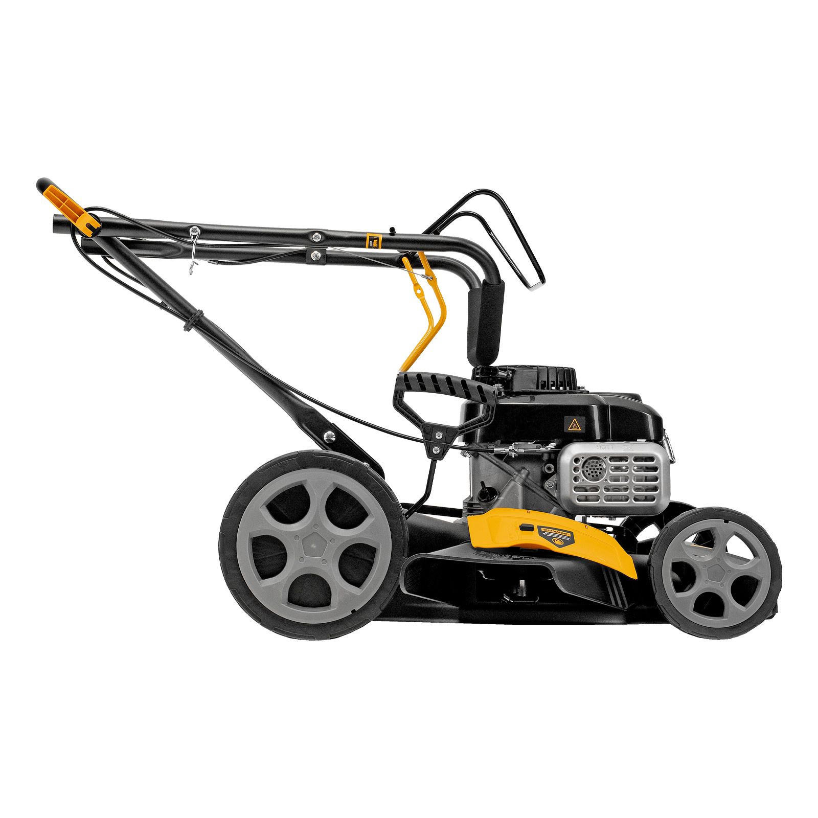 - Широкие колеса Eco-friendly — газонокосилка легко проходит по газону, не повреждая его.