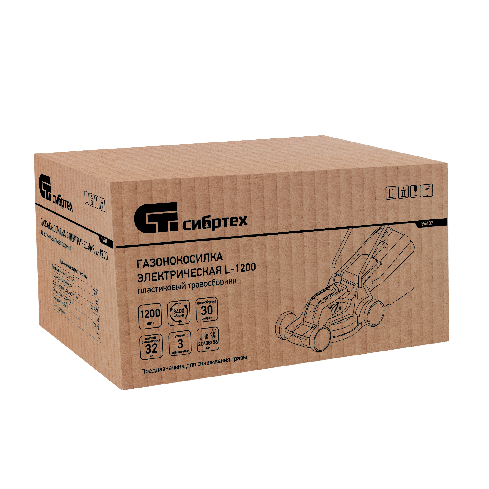 Газонокосилка электрическая L1200, 1200 Вт, ширина 32 см, 3 уровня, пластиковый травосборник 30 л. Сибртех в Москве