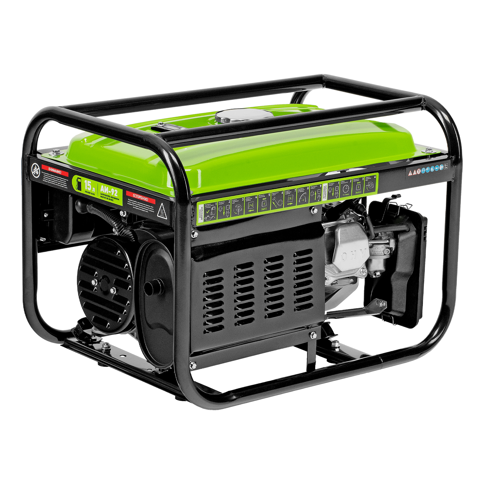Бензиновый генератор Сибртех БС-3500 94544 на 230 В, максимальной мощностью 3,2 кВт, с 4-тактным двигателем, 15-литровым баком и ручным стартером, предназначен для электроснабжения дачи, кемпинга, небольшого магазина, гаража или строительной площадки. Весит всего 38,8 кг, что облегчает транспортировку, а значит, его можно брать на выездные работы или на природу. Выдаваемого напряжения 3,2 кВт хватает для одновременного подключения 4 ламп накаливания, холодильника, телевизора, электрочайника.