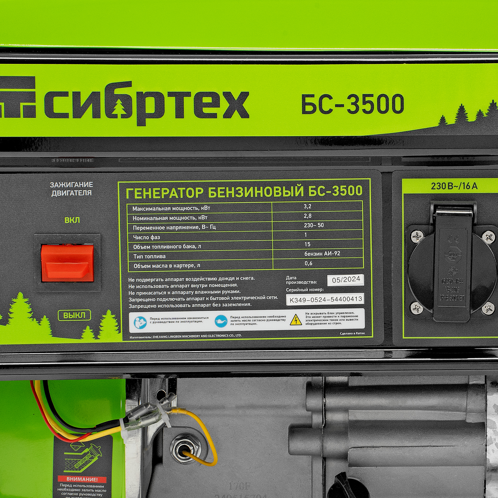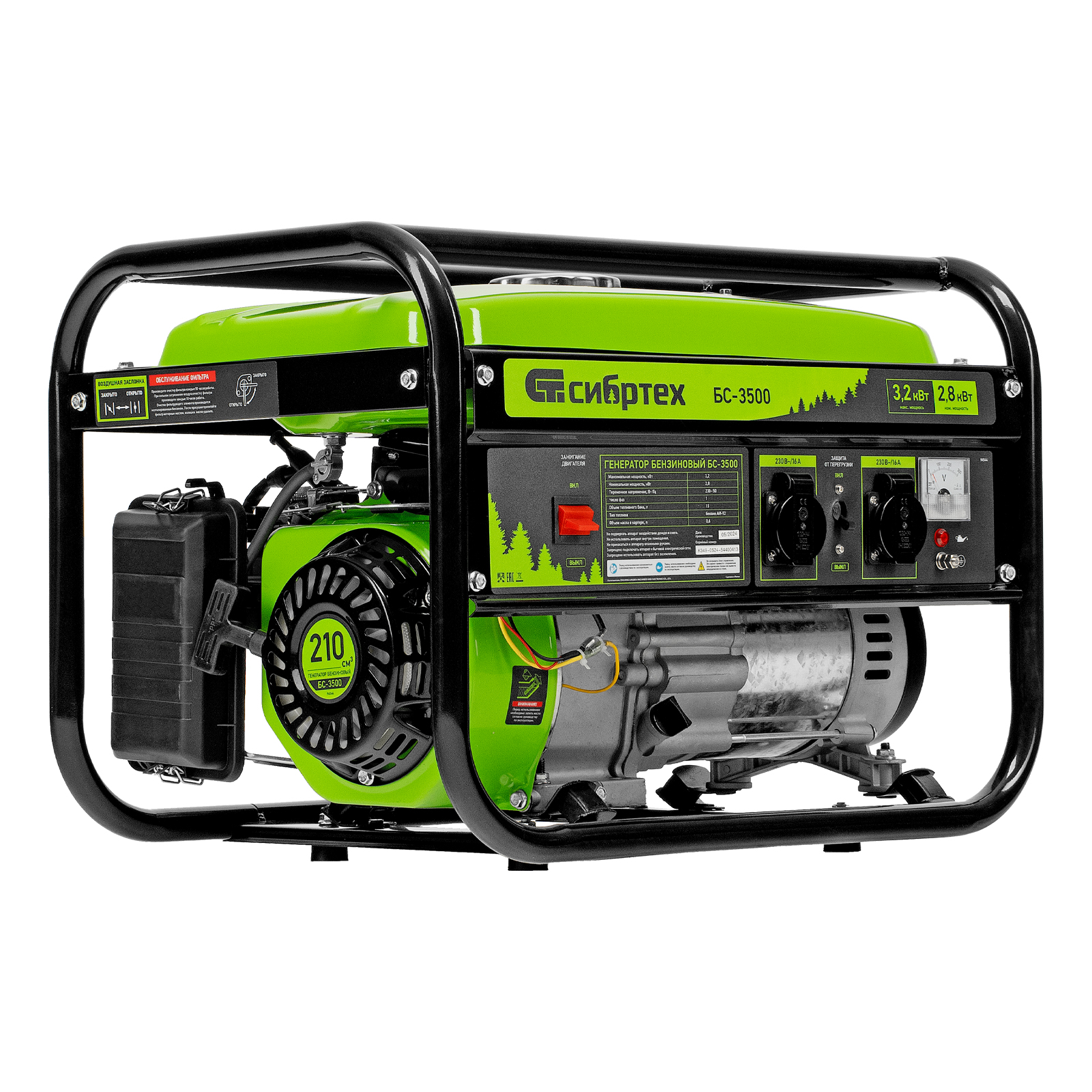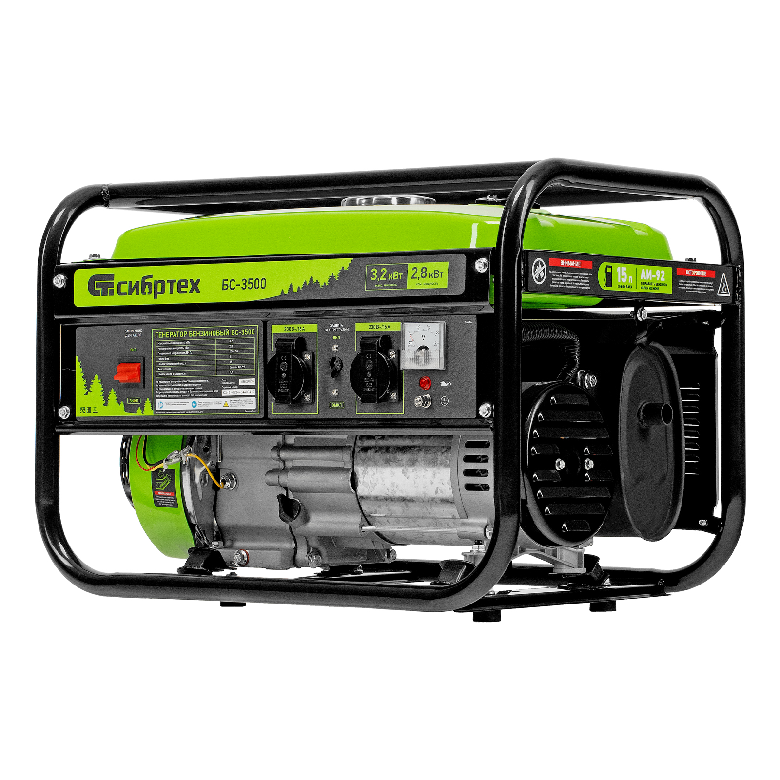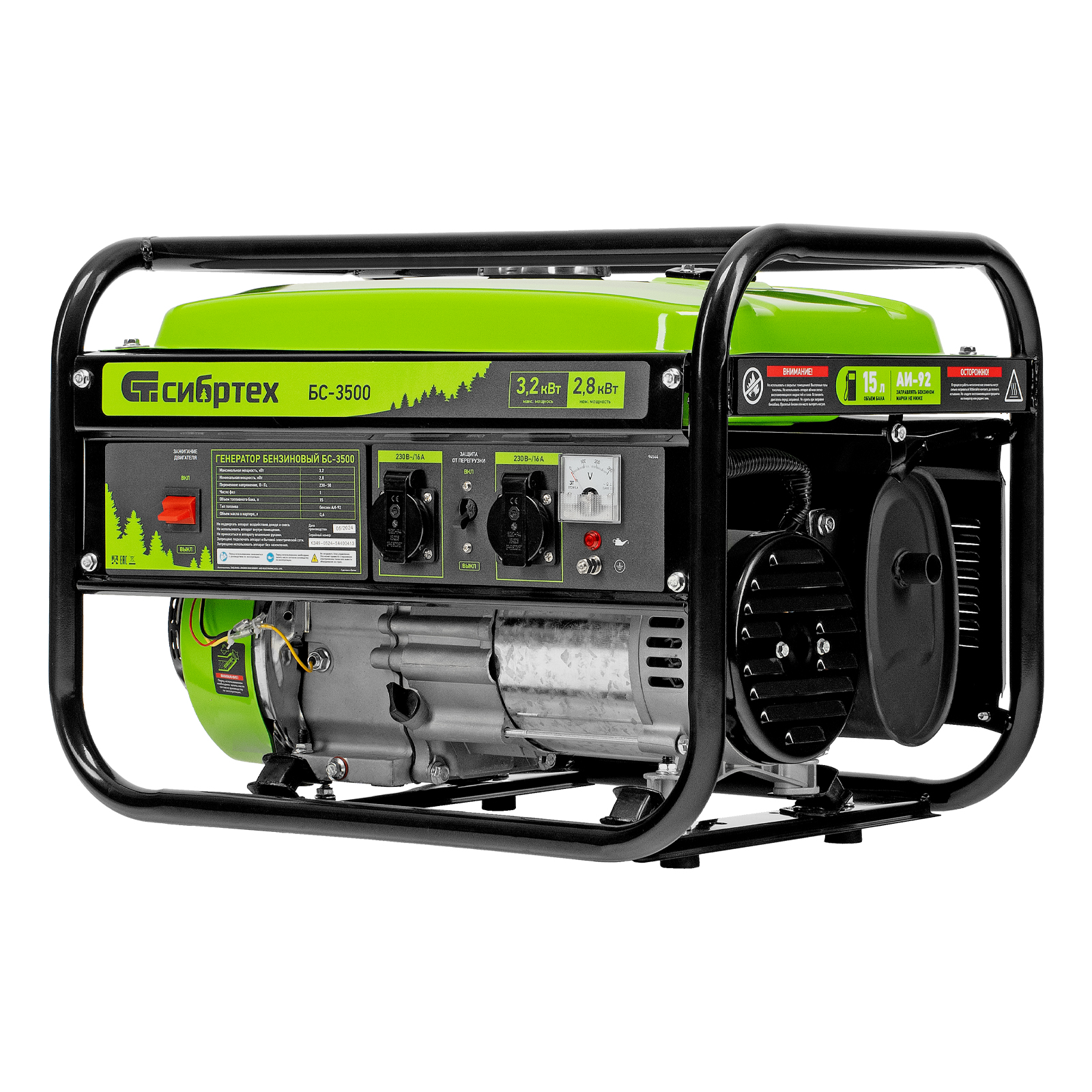 Генератор бензиновый БС-3500, 3.2 кВт, 230В, четырехтактный, 15 л, ручной стартер Сибртех в Москве