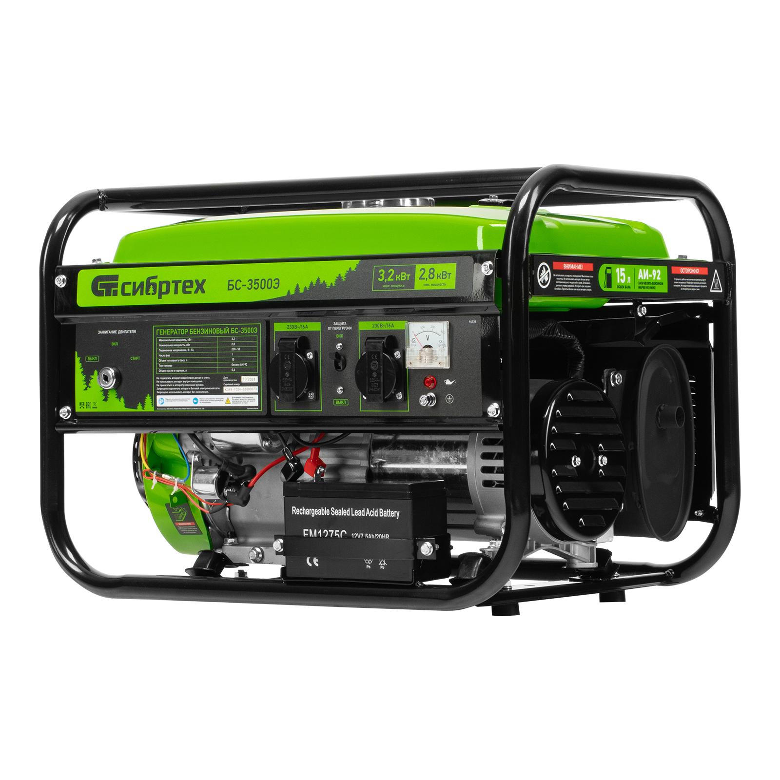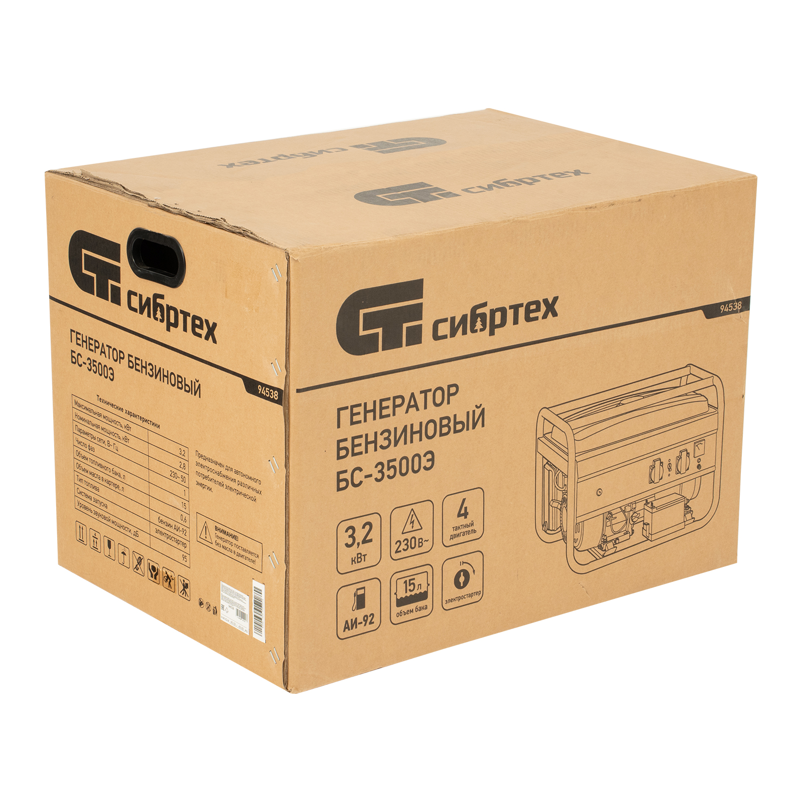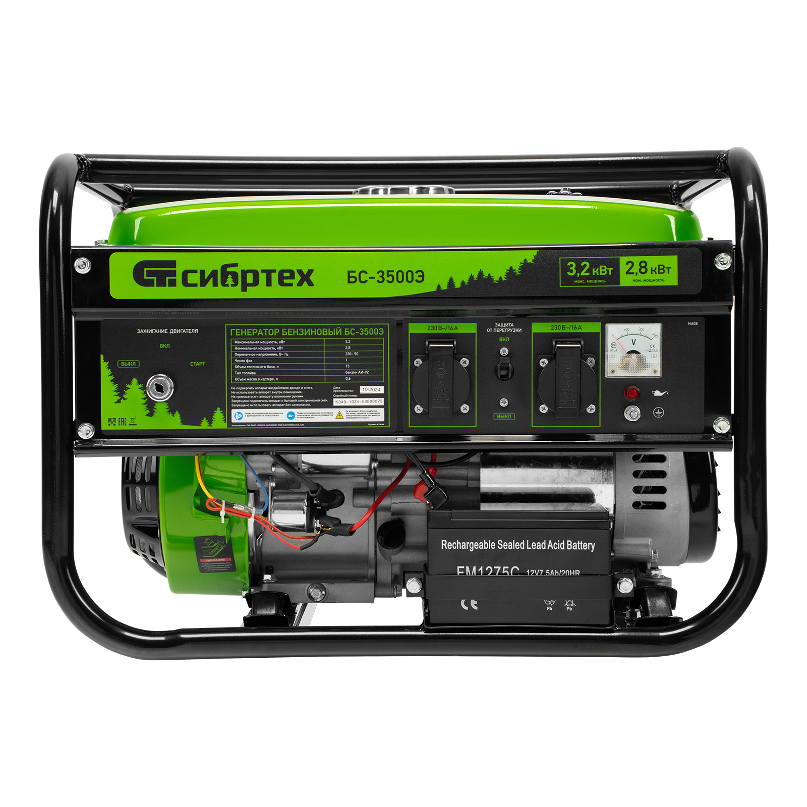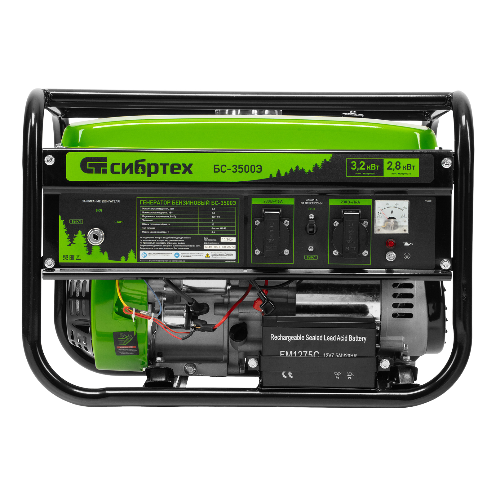 Генератор бензиновый БС-3500Э, 3.2 кВт, 230В, 4-х тактный, 15 л, электростартер Сибртех в Москве