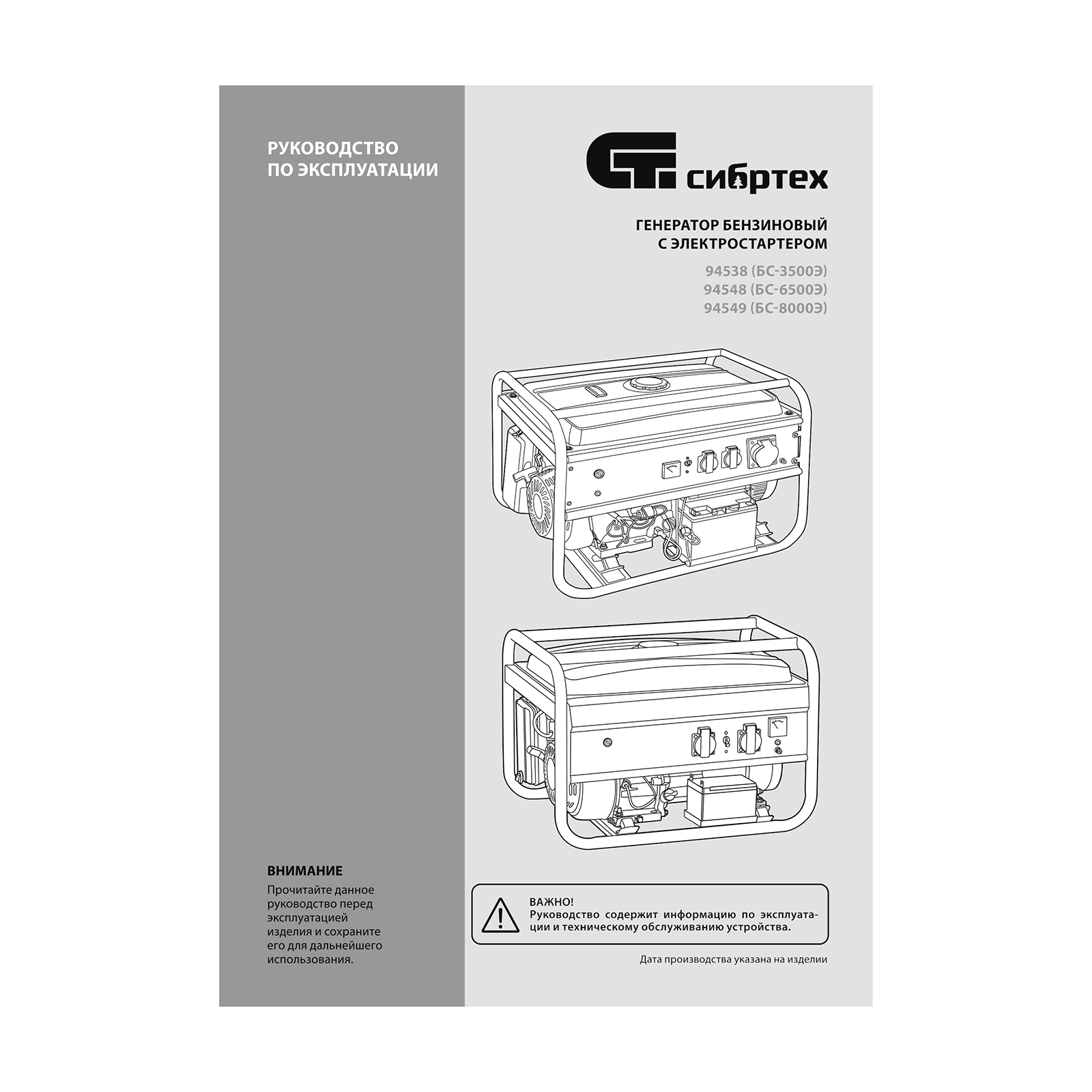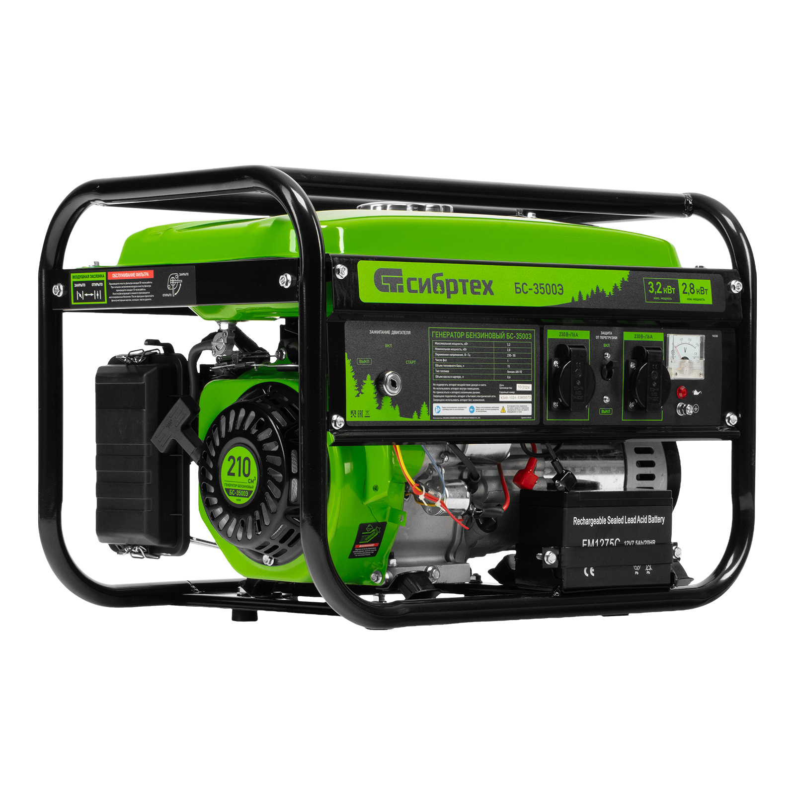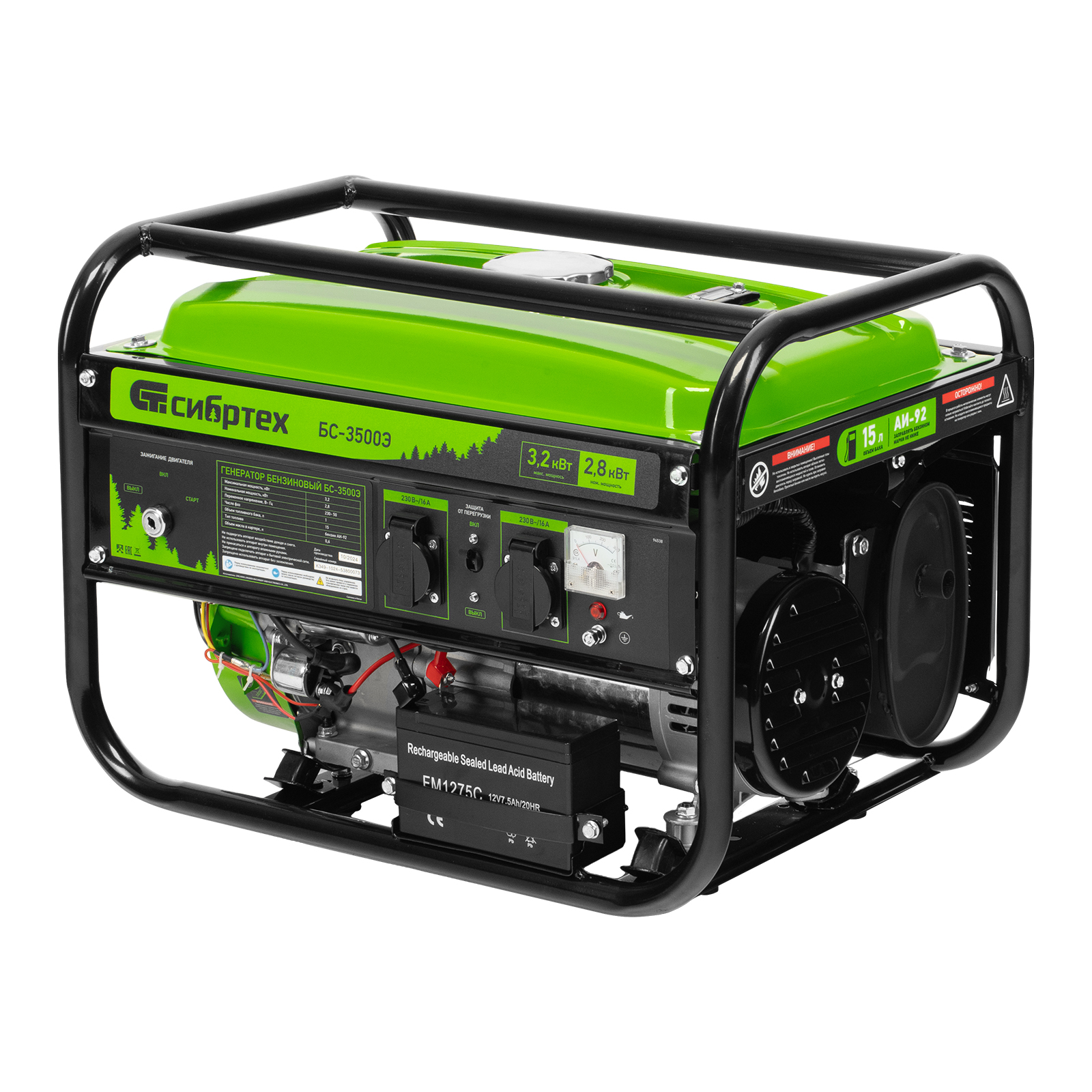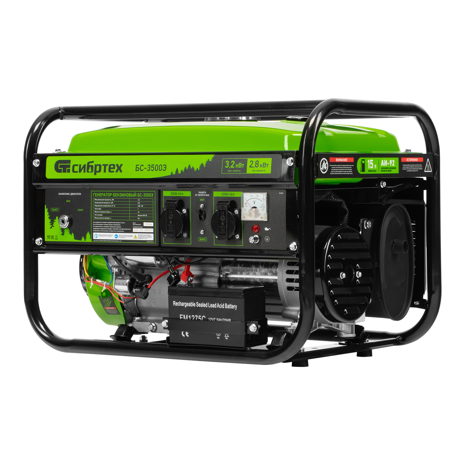 Генератор бензиновый БС-3500Э, 3.2 кВт, 230В, 4-х тактный, 15 л, электростартер Сибртех в Москве