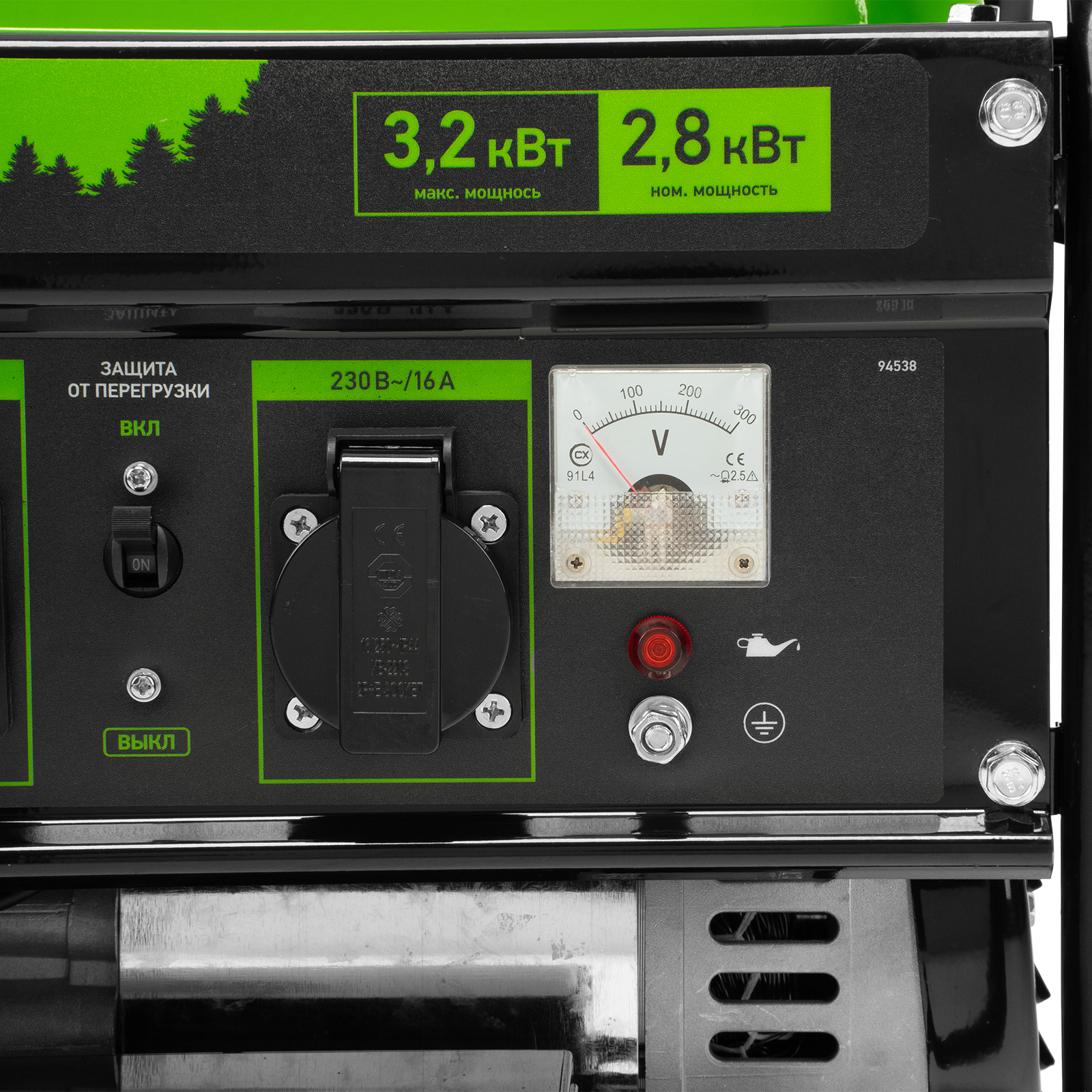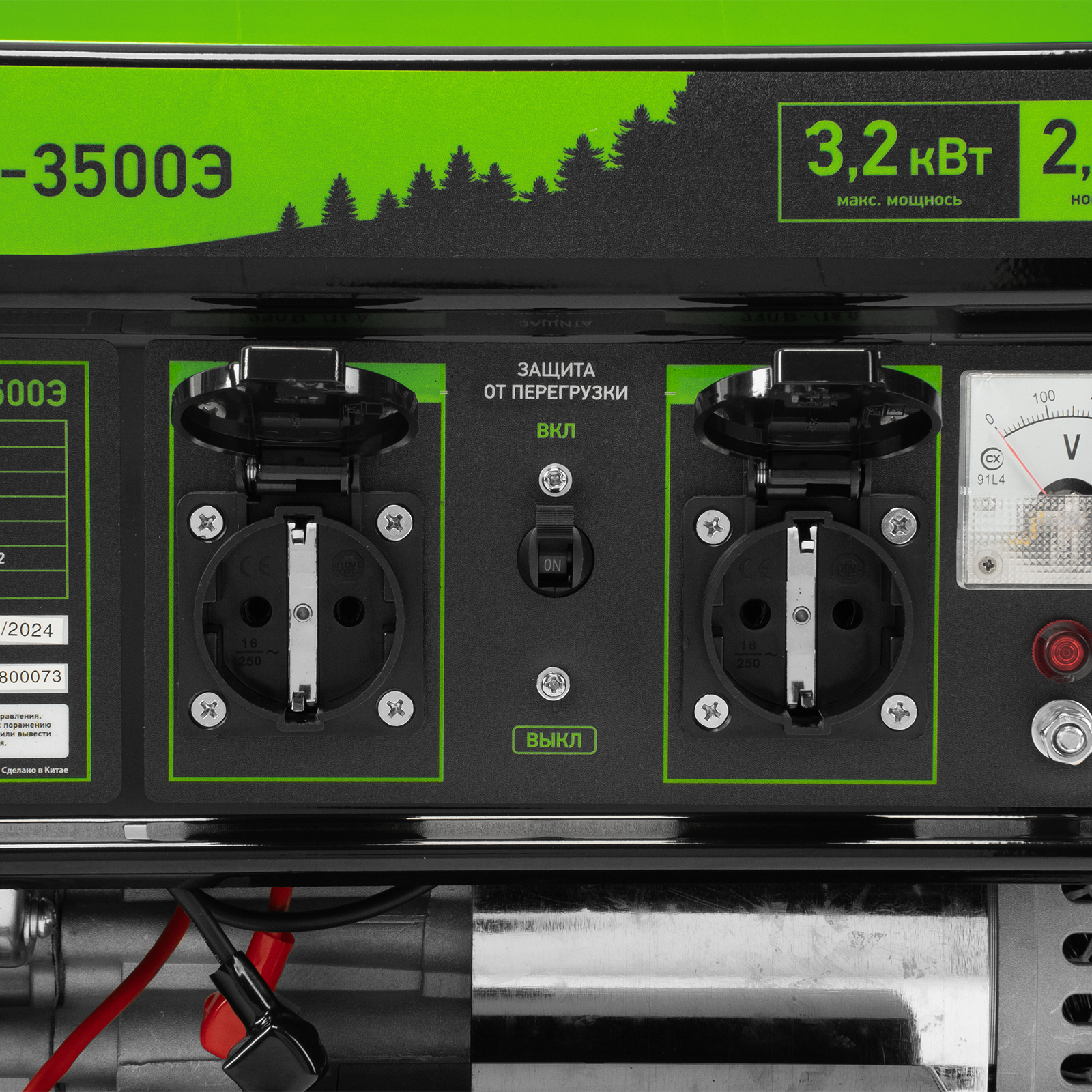 Бензиновый генератор Сибртех БС-3500Э 94538 выходной мощностью 3,2 кВт, с электростартером и баком объемом 15 л, поддерживает напряжение 230 В и предназначен для автономного электроснабжения в условиях отсутствия бытовой электросети. Для подключения потребителей предусмотрены 2 розетки 230 В/16 А. Автономный регулятор напряжения AVR позволяет подключать чувствительные приборы без риска их поломки. Генератор пригодится на дачном участке.