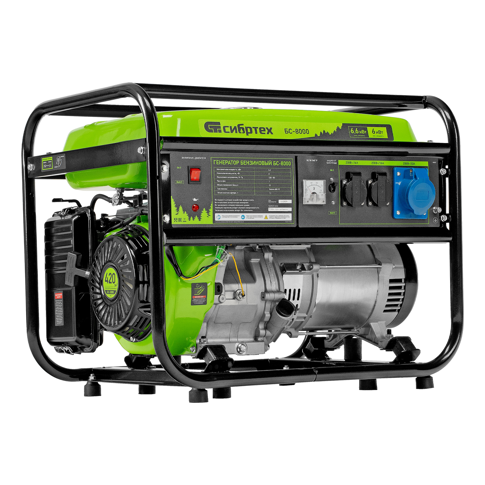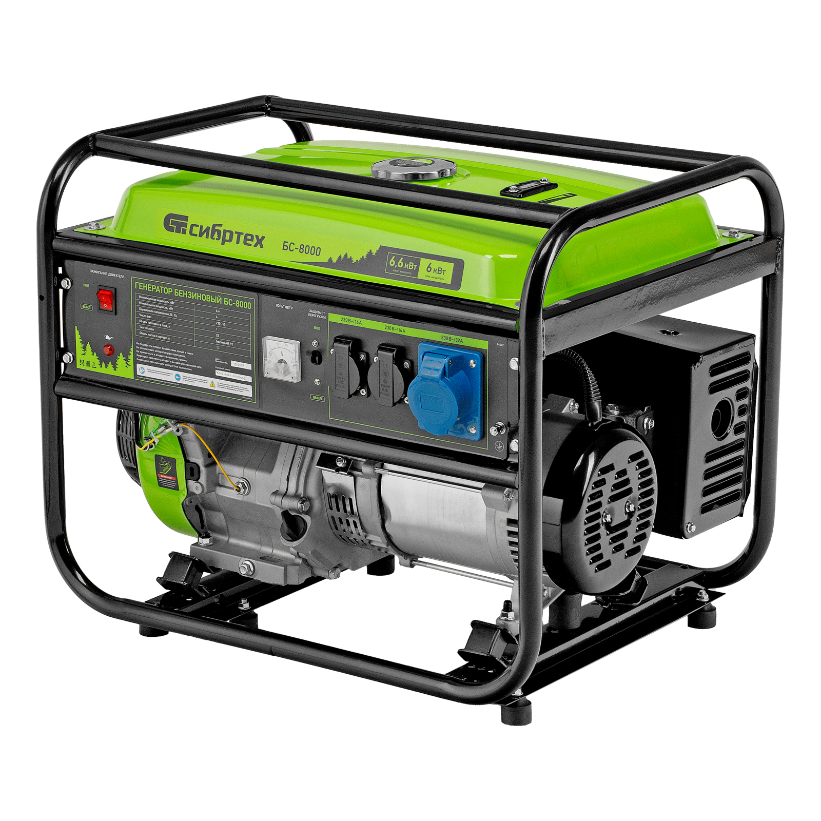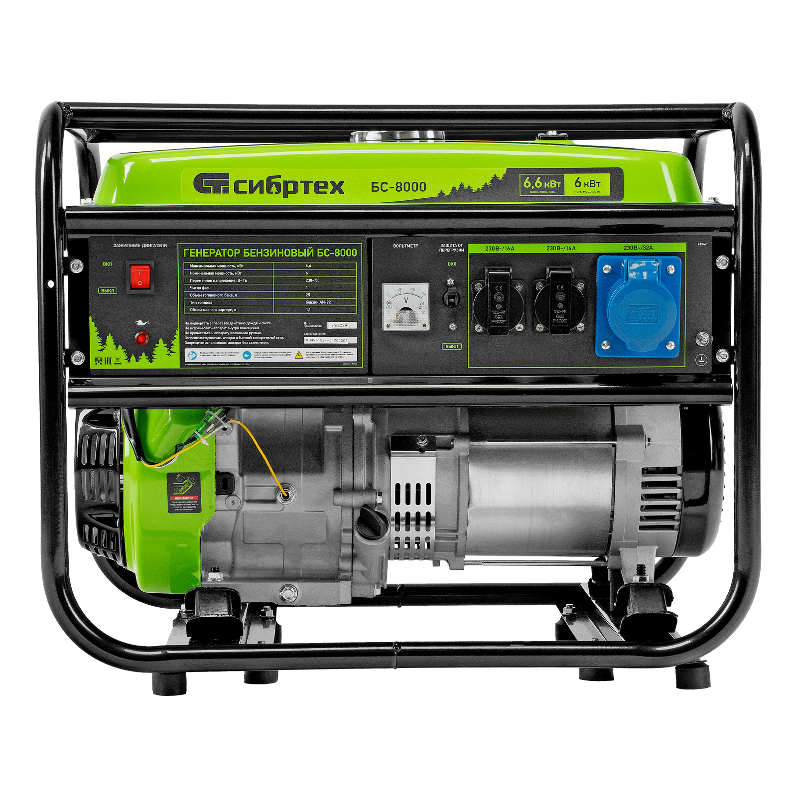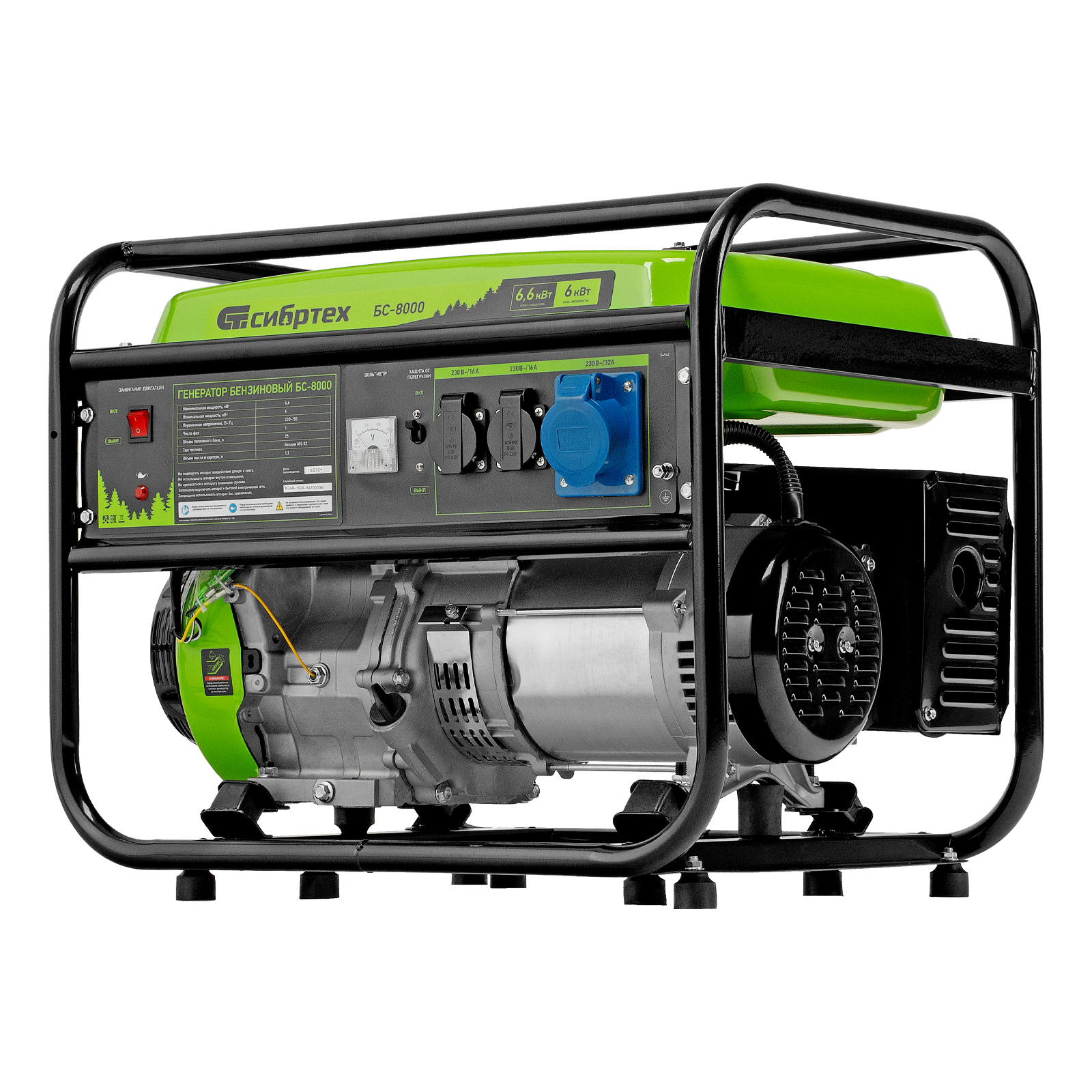 Генератор бензиновый БС-8000, 6,6 кВт, 230В, четырехтактный, 25 л, ручной стартер Сибртех в Москве