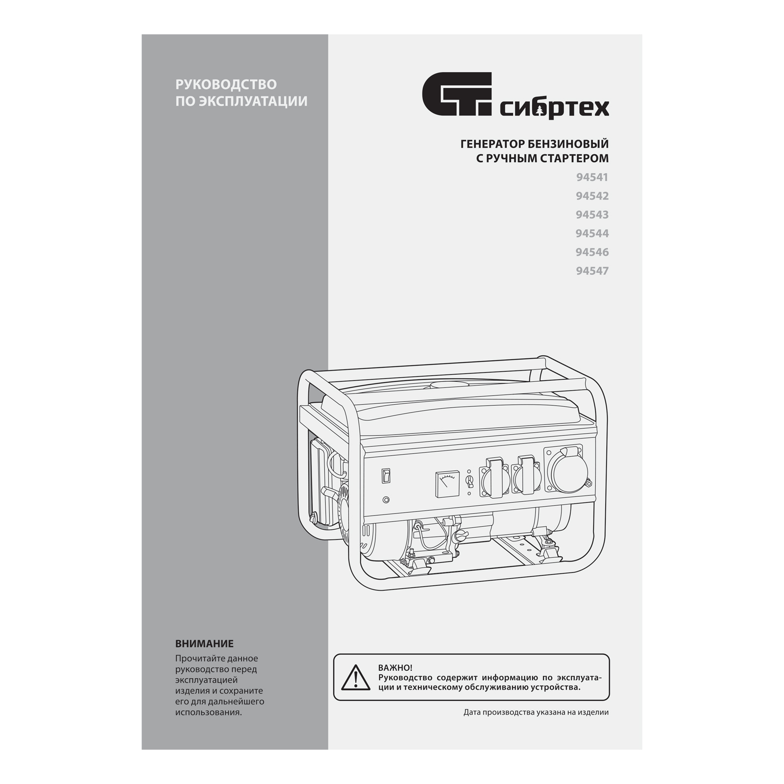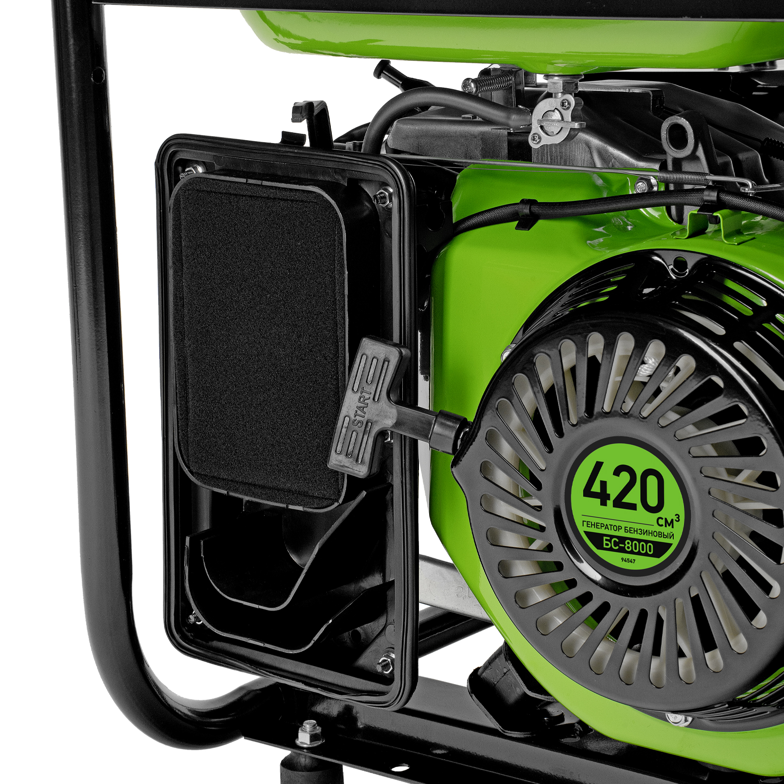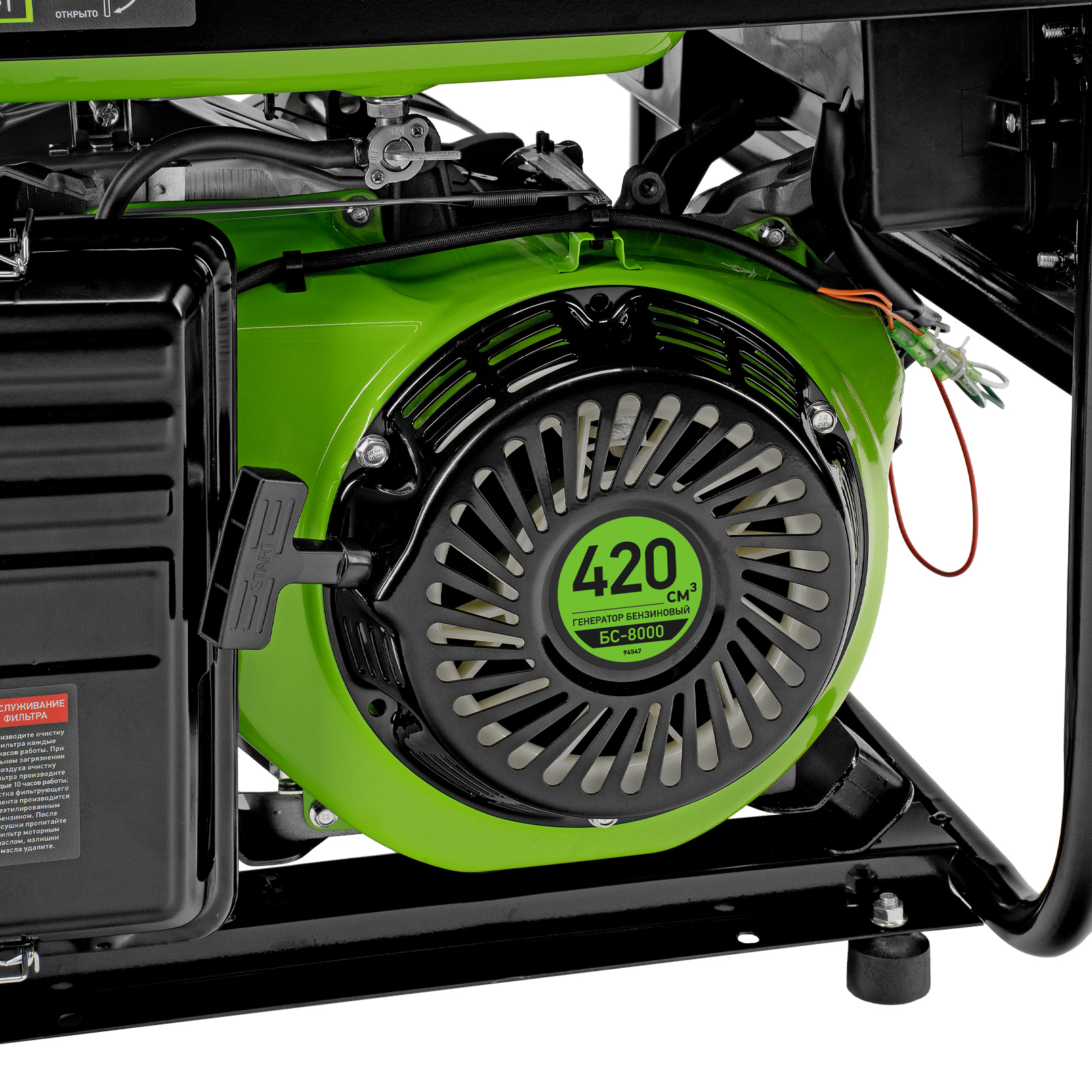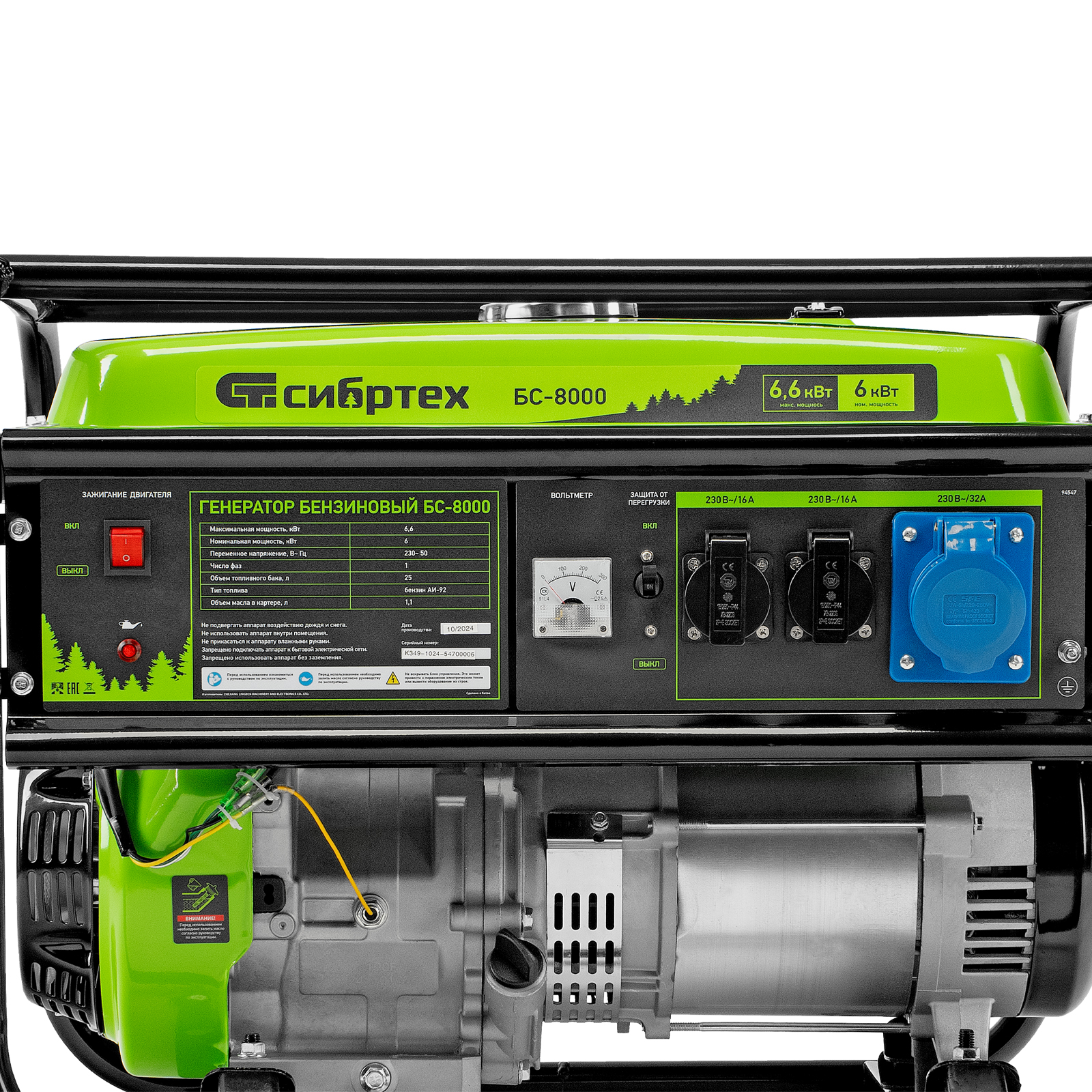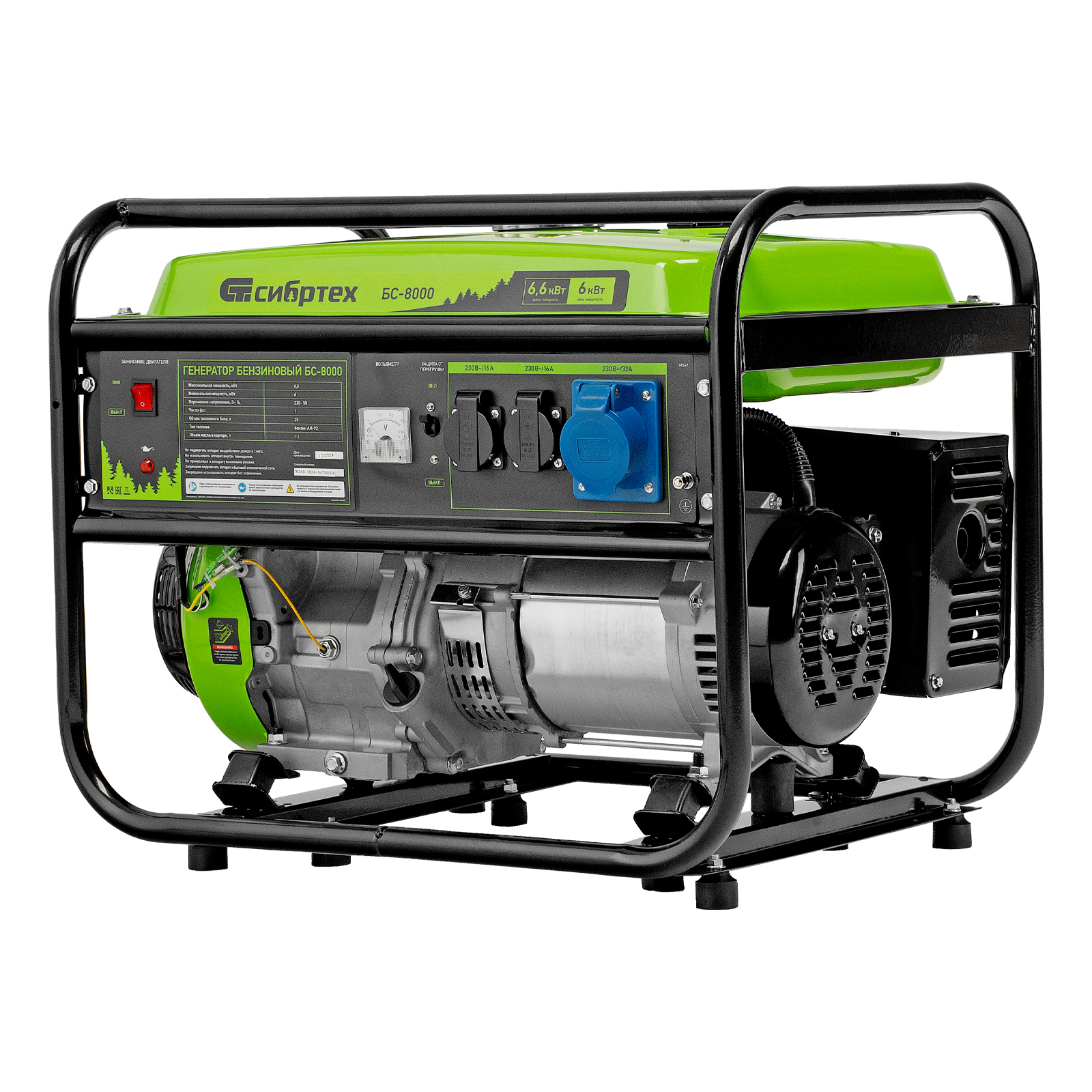 Генератор бензиновый БС-8000, 6,6 кВт, 230В, четырехтактный, 25 л, ручной стартер Сибртех в Москве