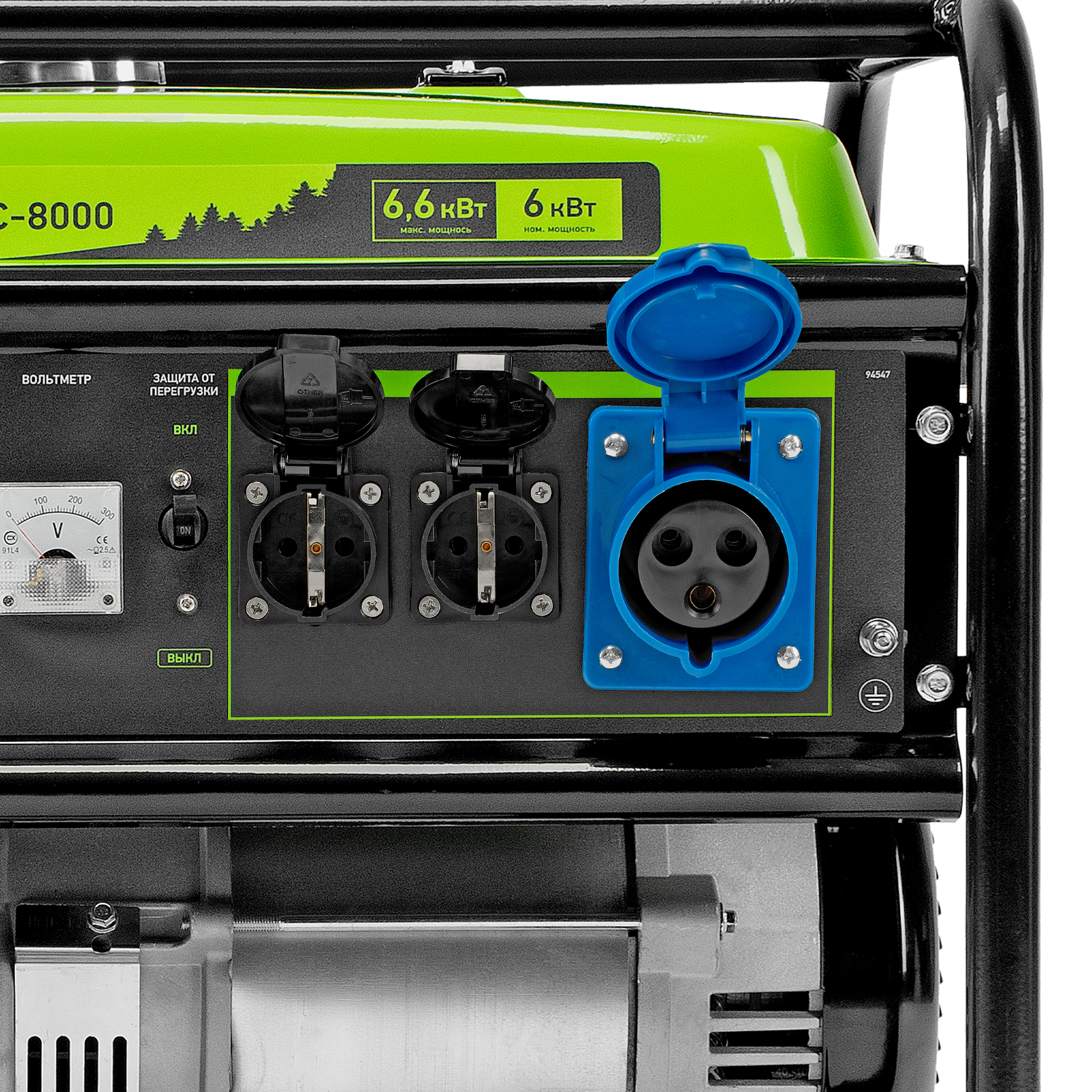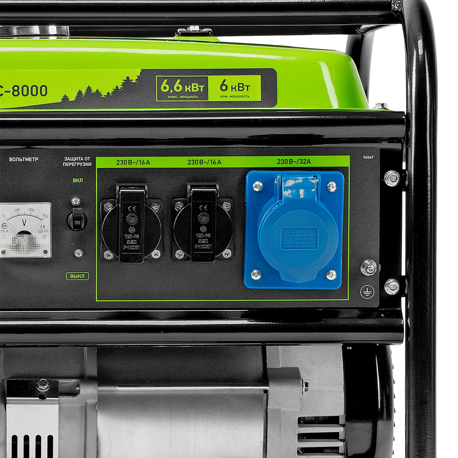 Бензиновый генератор Сибртех БС-8000 94547 на 230 В, с 4-тактным двигателем, с ручным стартером и баком объемом 25 л, вырабатывает 6,6 кВт и отлично подойдет для дачи, стройки, торговой палатки, гаража или мастерской. Высокая мощность и наличие силовой розетки позволяют одновременно подключить мощный водяной насос, электроплиту, а также обеспечить освещение рабочего места.