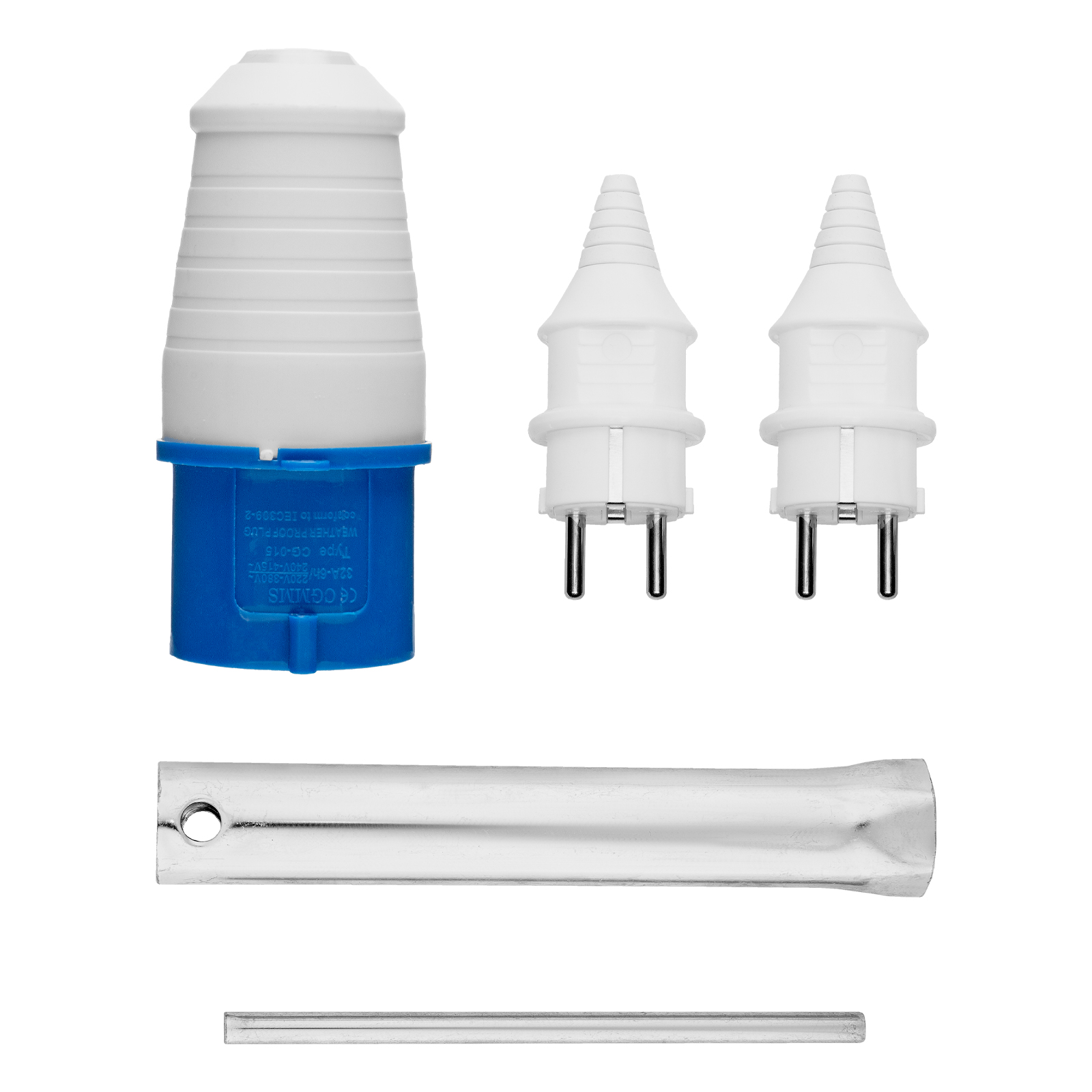 Генератор - 1 штКлюч свечной - 1 штВилка 230В/16А - 2 штВилка 230В/32А - 1 штРуководство по эксплуатации с гарантийным талоном - 1 шт |