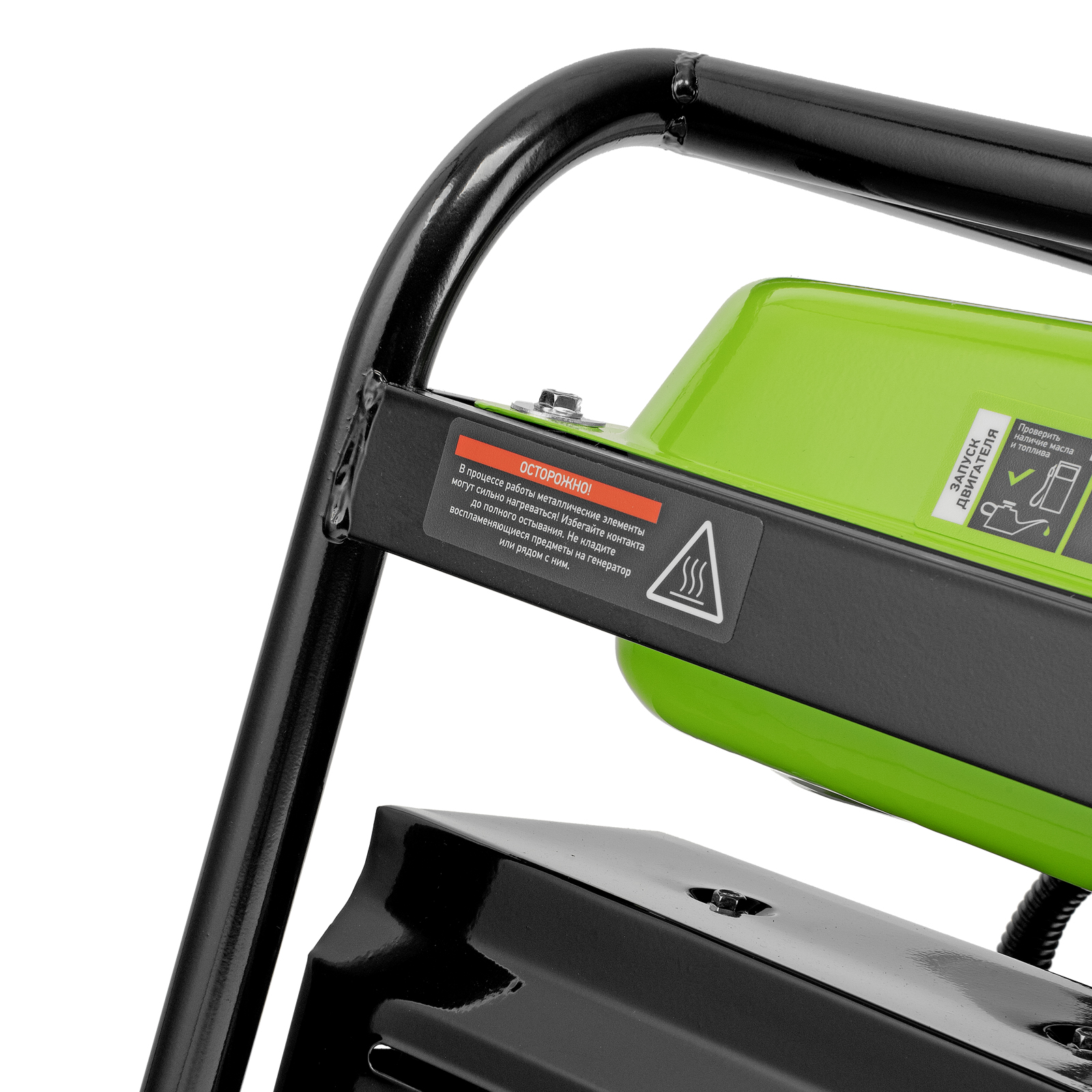 - Прочная конструкция — стальная рама надежно защищает генератор от повреждений.