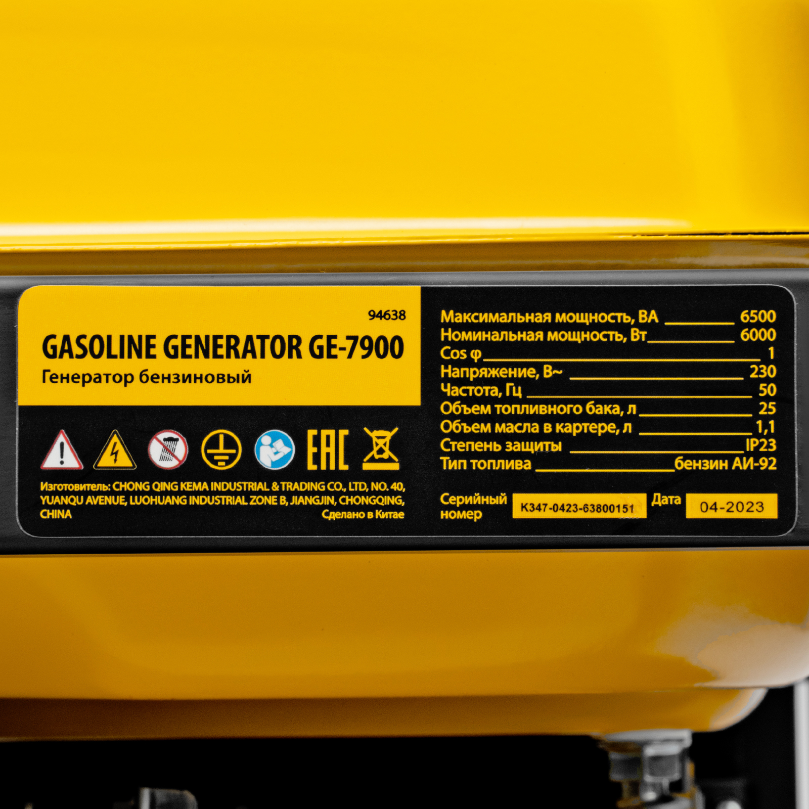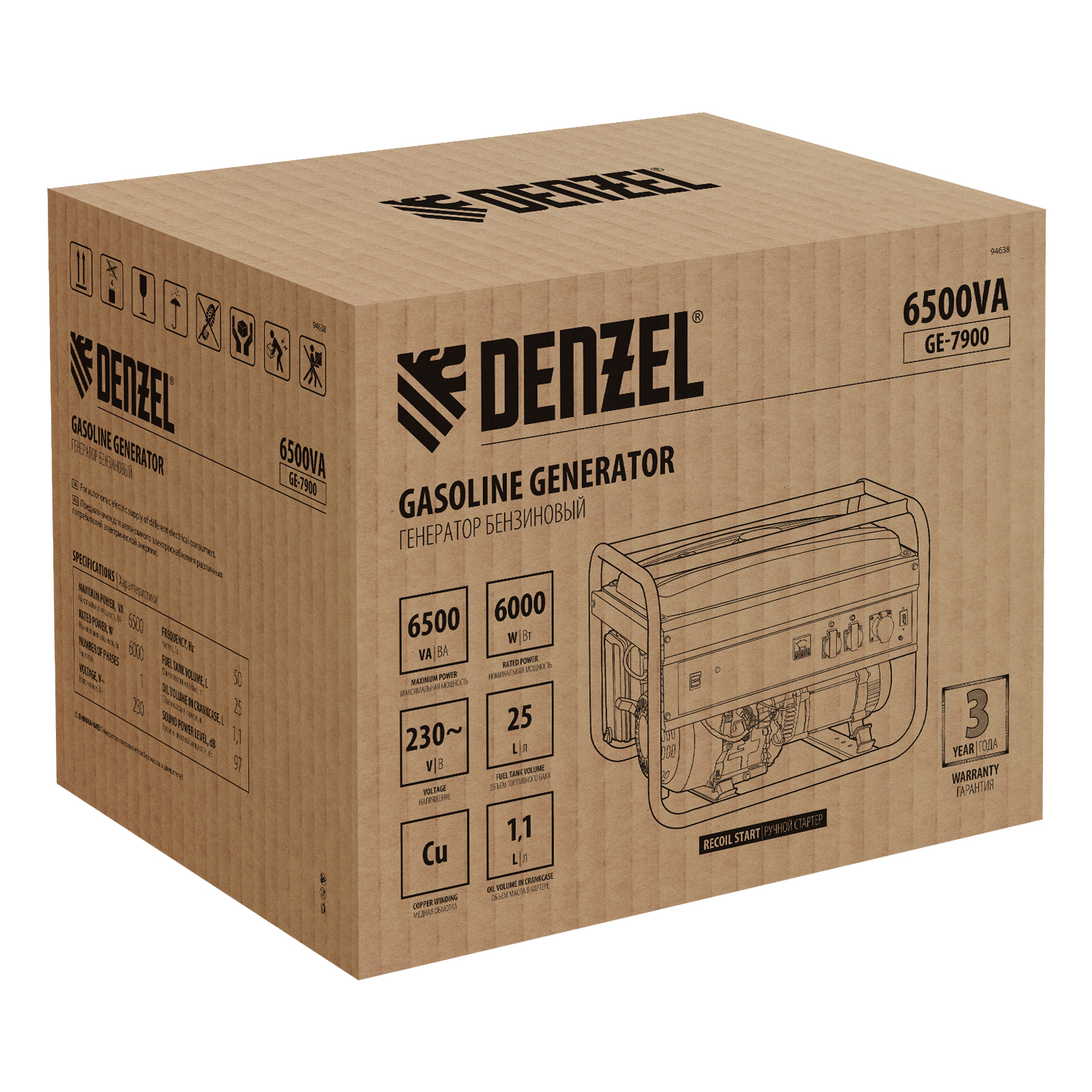 Генератор бензиновый GE 7900, 6.5 кВт, 220 В/50 Гц, 25 л, ручной пуск Denzel в Москве