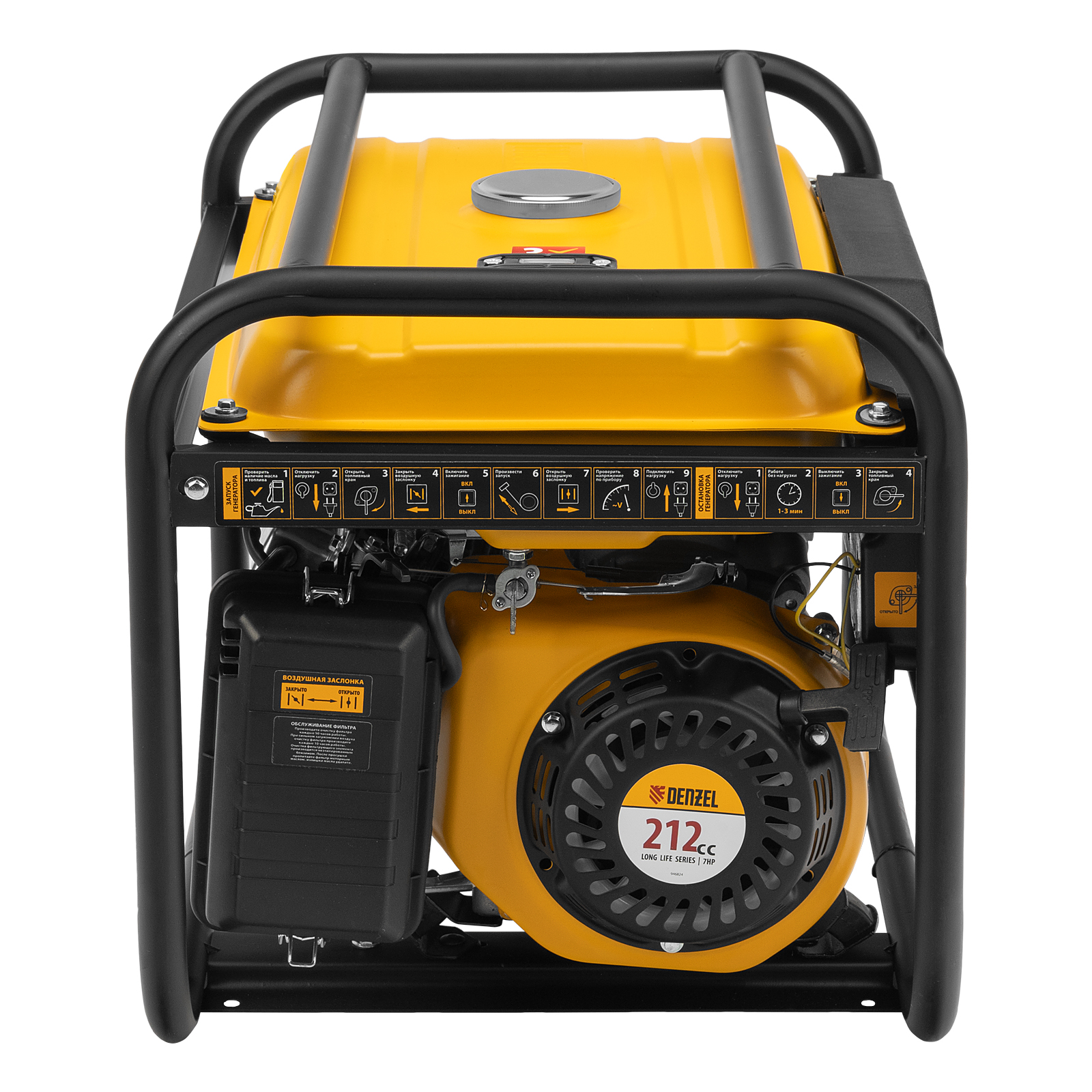 Бензиновый генератор Denzel PS 28 946824 мощностью 2,8 кВт с ручным стартером отлично подойдет для дачного участка, строительной площадки, домашней мастерской, кемпинга, рыбалки. Позволяет одновременно подключать несколько приборов, например, электрочайник, холодильник и 3 лампы дневного освещения. Благодаря увеличенному бензобаку на 15 л устройство будет работать более 12 часов без дозаправки. Экономичный и надежный четырехтактный двигатель мощностью 7 л.с. снижает выхлопы, расход топлива и уровень шума.