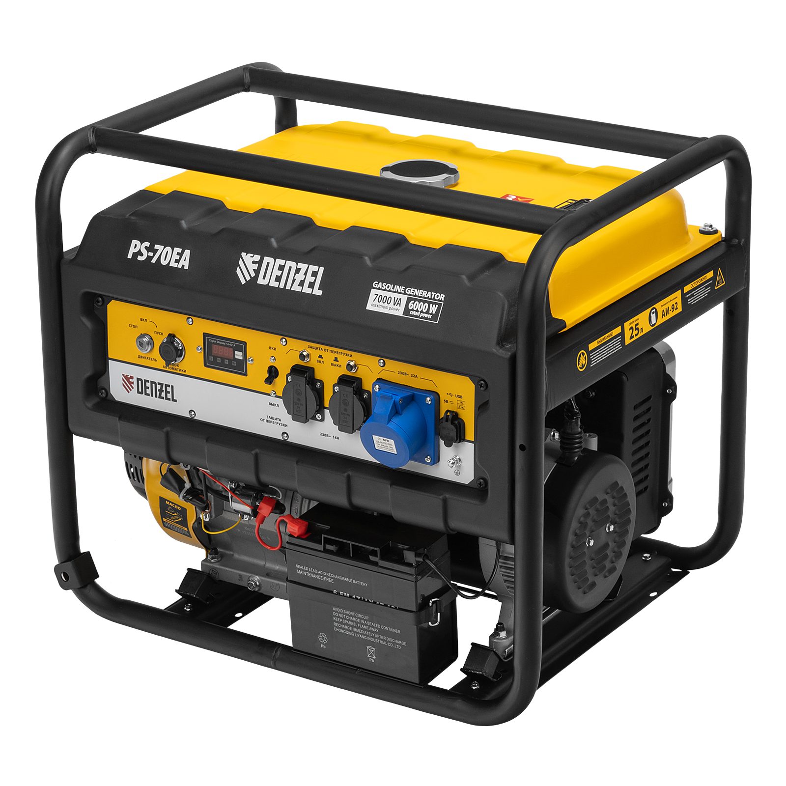 Генератор бензиновый PS 70 EA, 7.0 кВт, 230 В, 25 л, коннектор автоматики, электростартер Denzel в Москве