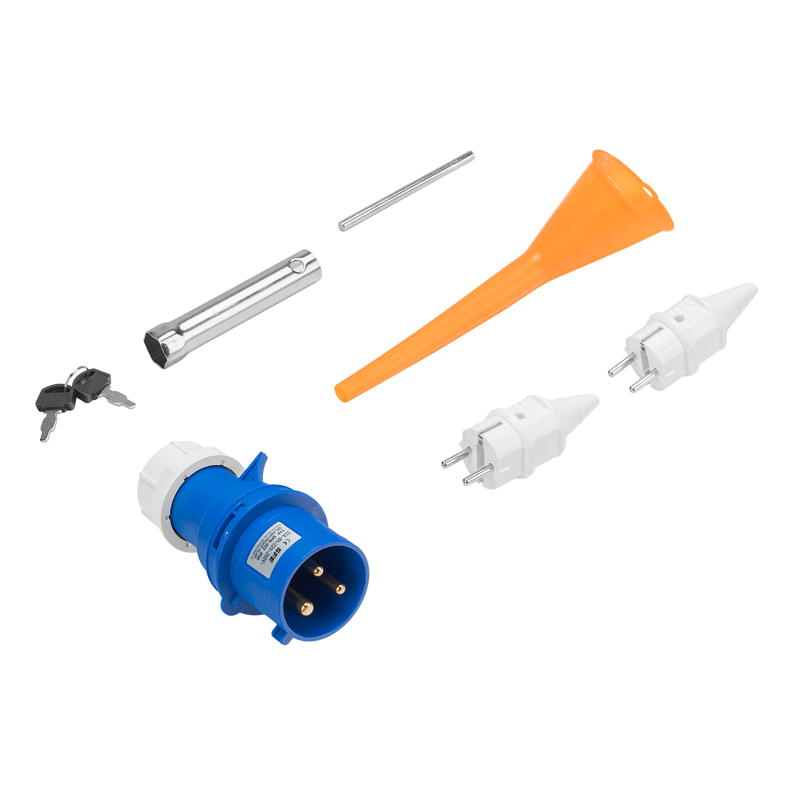 Генератор - 1 штКлюч свечной - 1 штКлюч зажигания - 2 штВилка 230В/16А - 2 штВилка 230В/32А - 1 штРуководство по эксплуатации с гарантийным талоном - 1 штБатарея аккумуляторная - 1 шт |