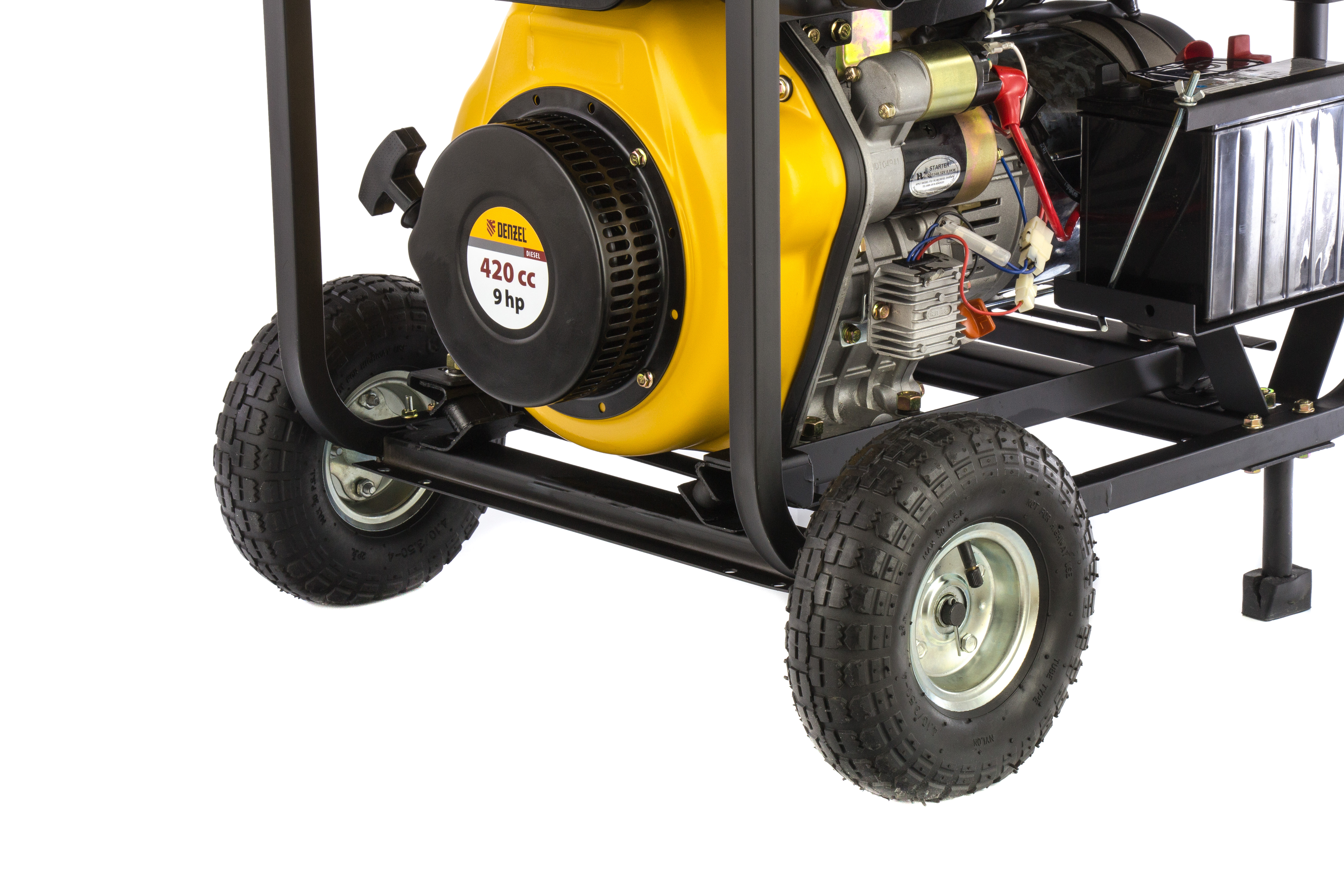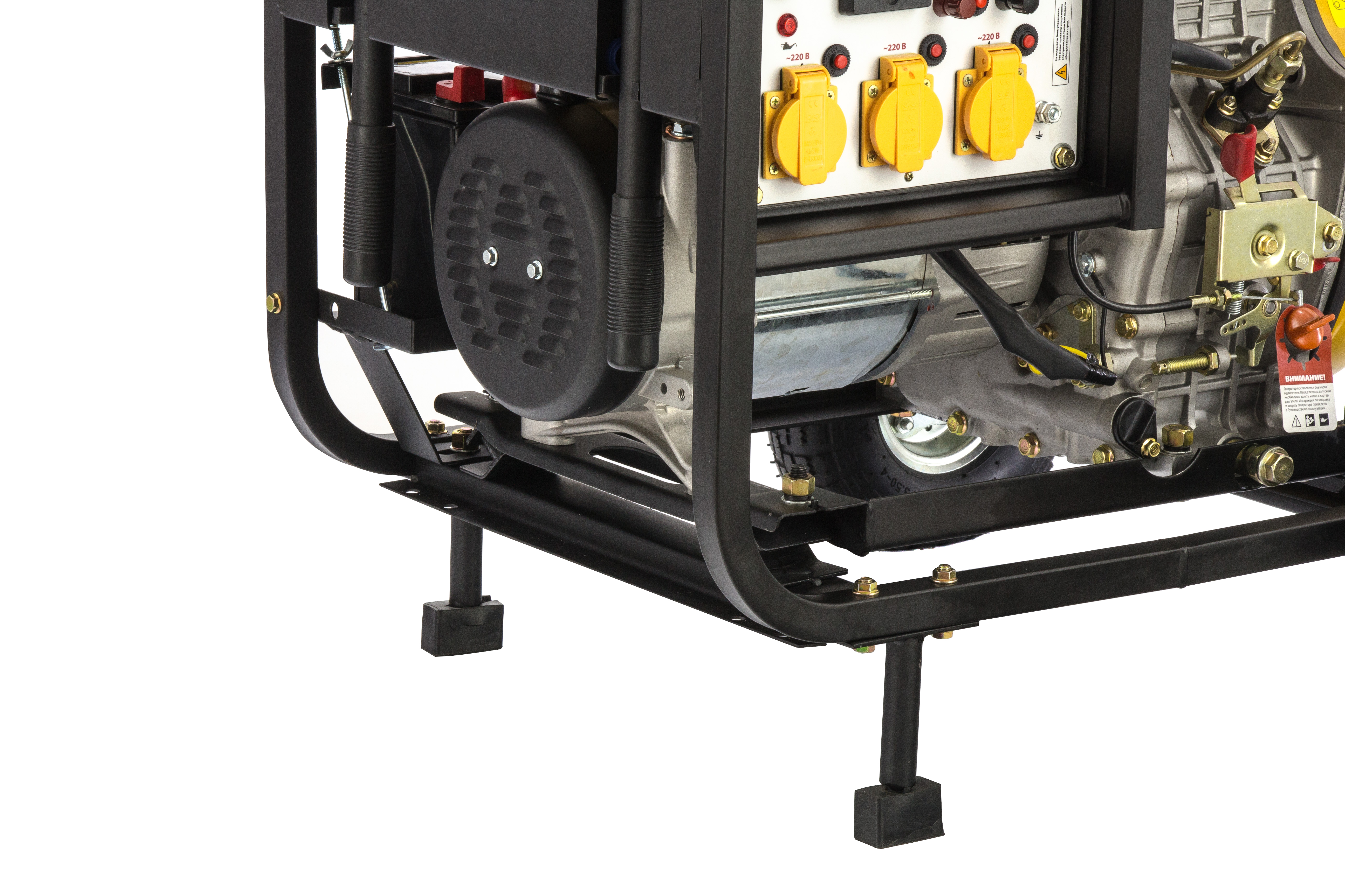 Дизельный генератор Denzel DD6300Е 94657 мощностью 5,0 кВт, 230 В / 50 Гц, с баком объемом 15 л и электростартером, предназначен для снабжения электричеством дачи, садового участка, строительной площадки, мастерской, магазина. Например, к нему можно одновременно подключить телевизор, холодильник, утюг, микроволновку, 3 лампы накаливания. Дизельный генератор потребляет меньше топлива, чем аналогичный по мощности бензиновый — бака объемом 15 л хватит на 10 часов работы.
