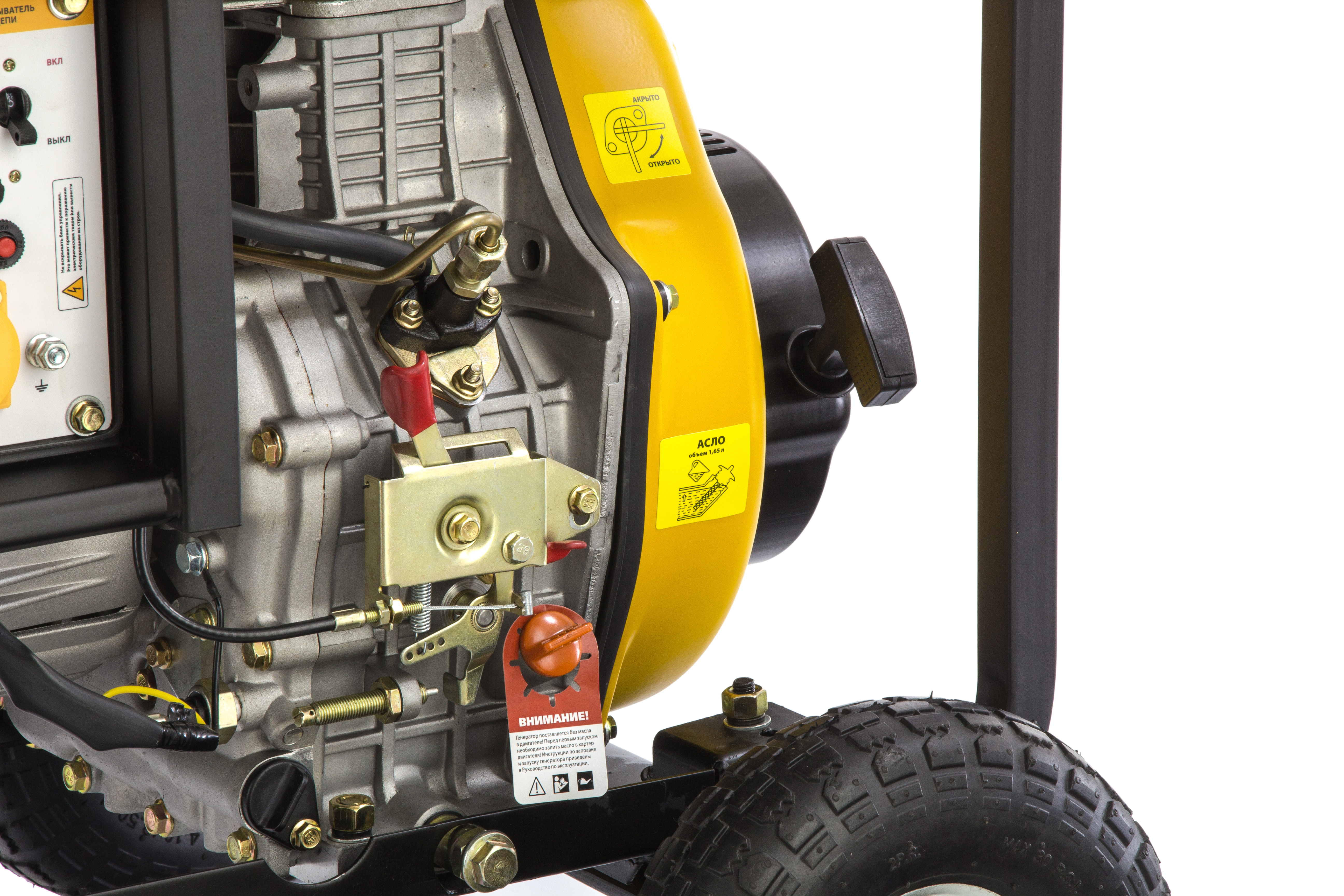 - Высокий ресурс поршневой группы — генератор не запустится при низком уровне масла.
