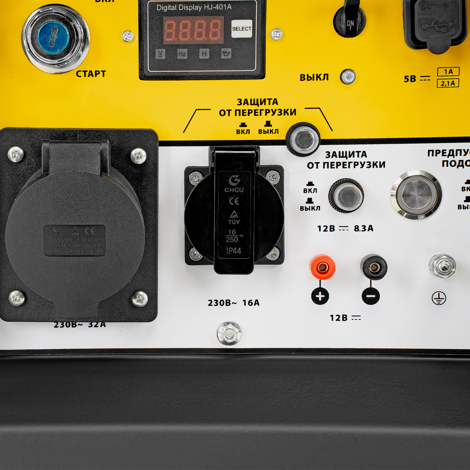 - Уверенный запуск — ручной стартер позволяет запустить генератор, даже если бортовой аккумулятор разрядился, функция предпускового подогрева облегчает эксплуатацию в зимний период.