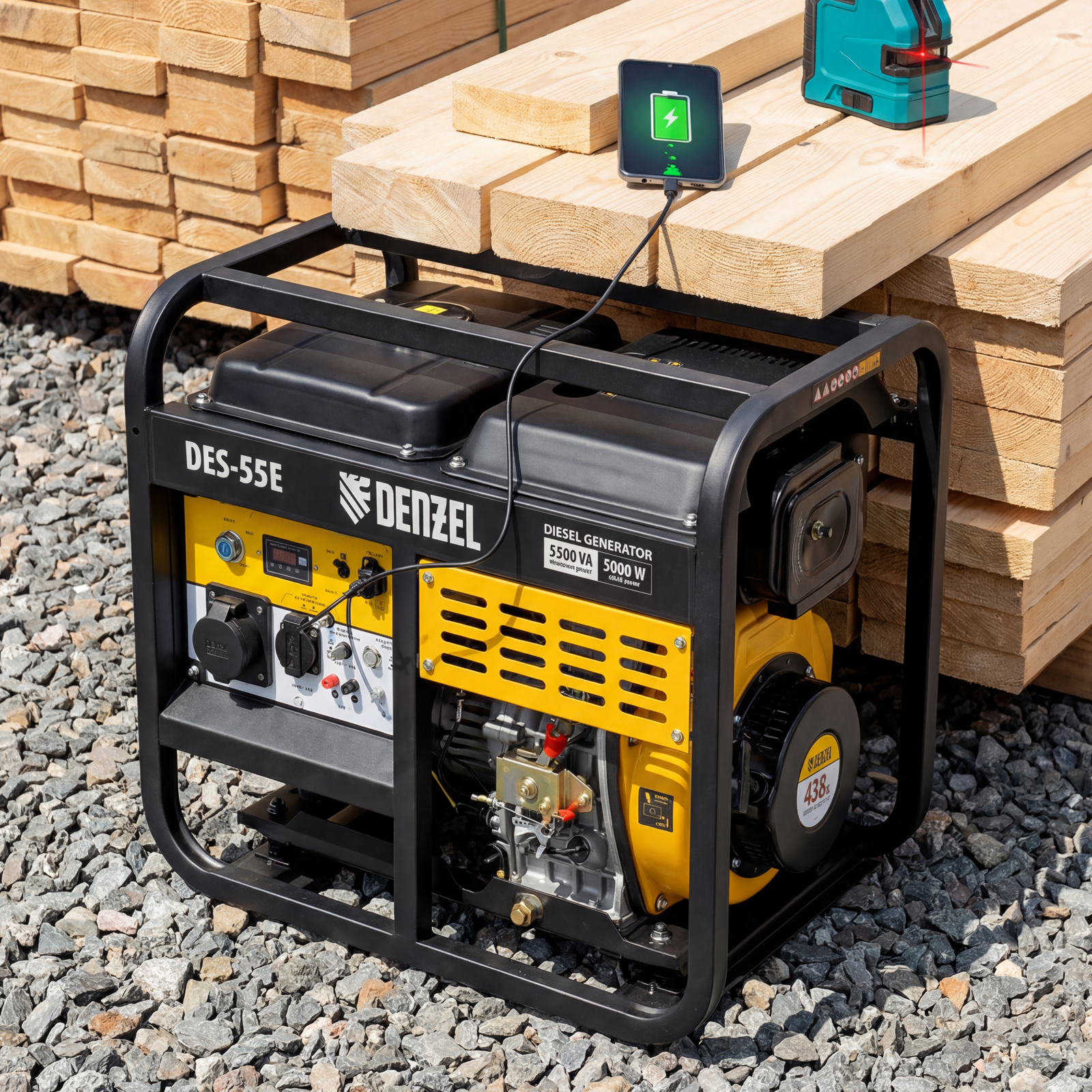 Генератор дизельный DES-55E, 5,5 кВт, 230 В, 11 л, электростартер Denzel в Москве