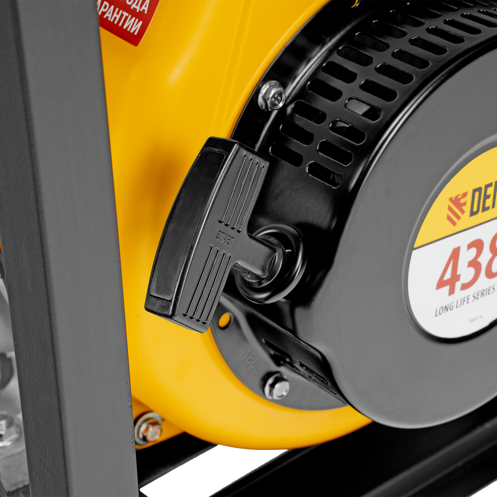 - Мобильность — к генератору можно приобрести транспортировочный комплект Denzel 94906 для перемещения по рабочей площадке.