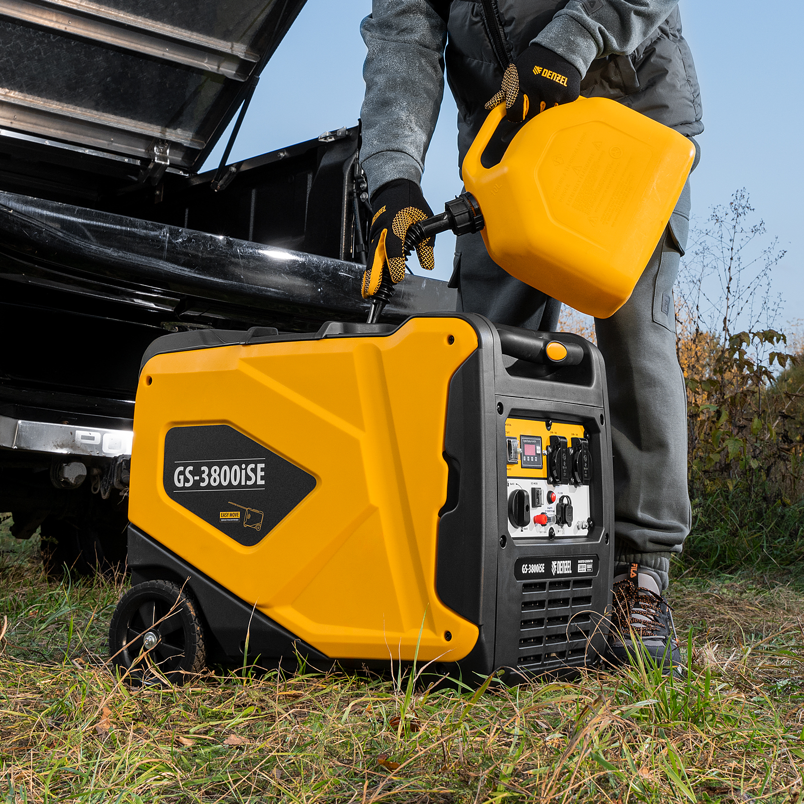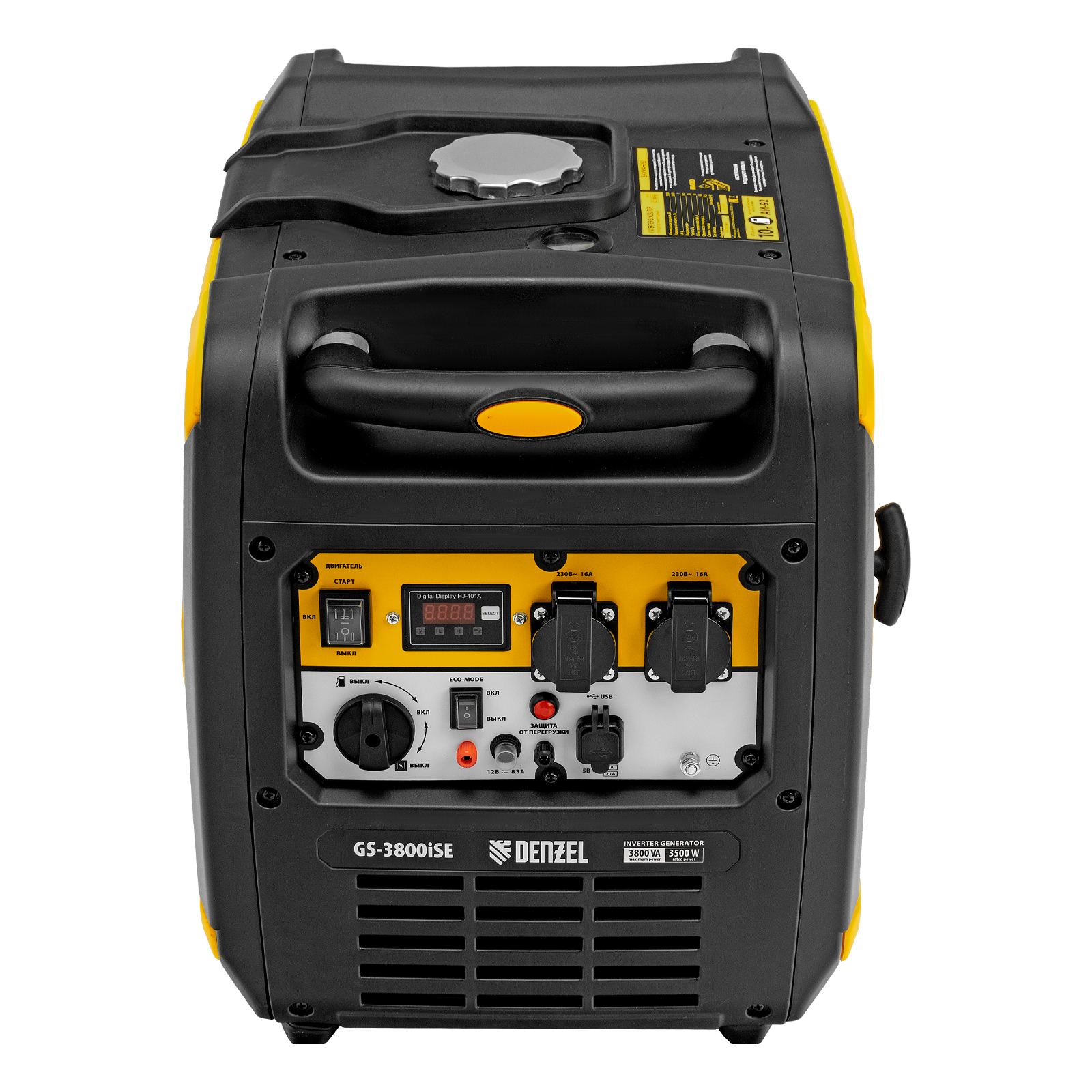 Генератор инверторный Denzel GS-3800iSE 94711 максимальной мощностью 3,8 кВт, в закрытом корпусе, с электростартером, поддерживает напряжение в сети 230 В и используется для обеспечения работоспособности бытовой техники, электроинструмента и осветительных приборов в условиях отсутствия бытовой сети. Для подключения потребителей предусмотрено две розетки 230 В / 16 А. Выход USB 5 В позволяет подключать мобильное устройство, например, смартфон или планшет, а клеммы постоянного тока 12 В служат для зарядки автомобильных аккумуляторов. Генератор незаменим в загородном доме.