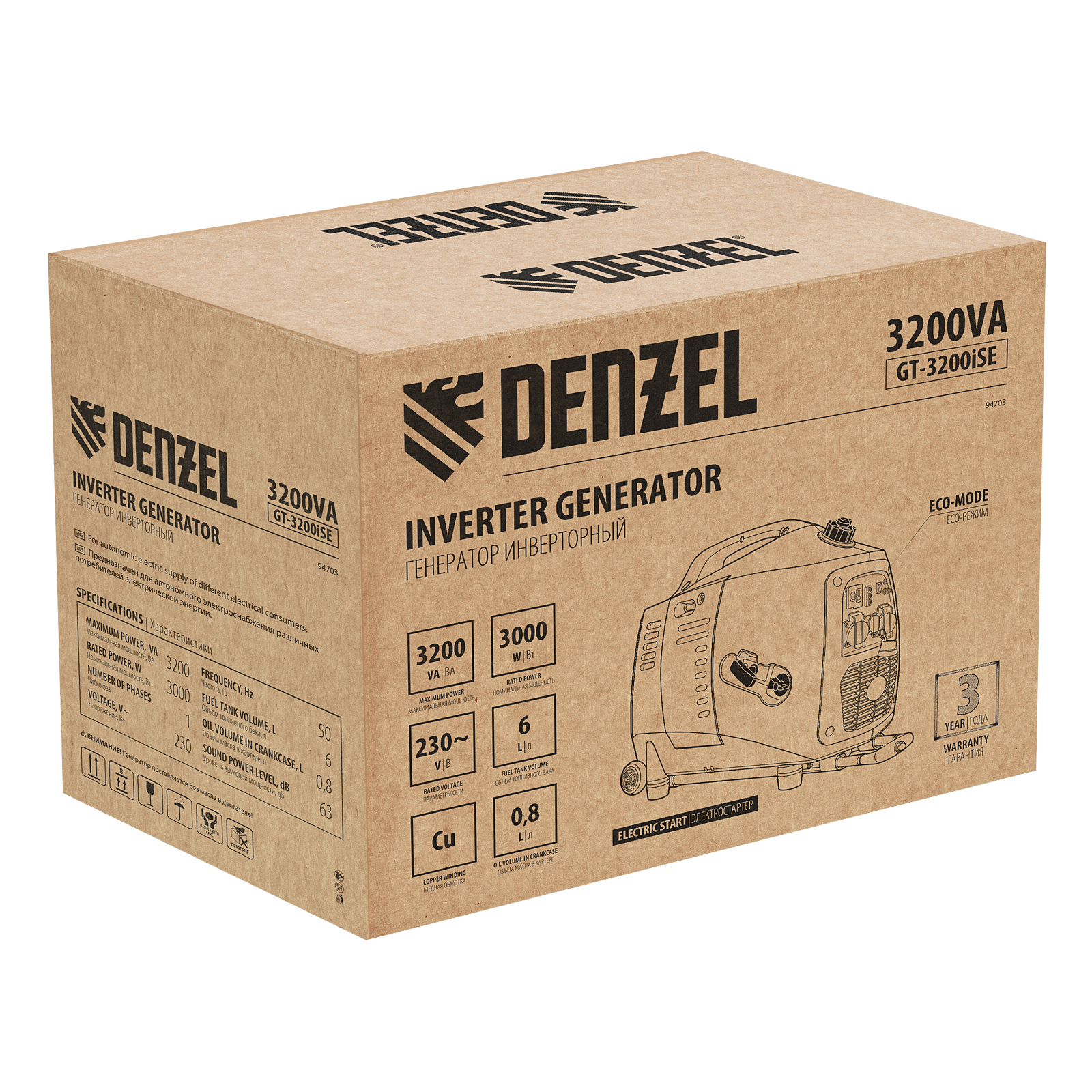 Инверторный генератор Denzel GT-3200iSE 94703 с электростартером, в закрытом корпусе, — легкий, компактный и экономичный, но при этом выдает максимальную мощность 3,2 кВт. Отлично подходит для использования на даче, на природе, в гараже или в торговой палатке. Четырехтактный двигатель мощностью 4,6 л.с. и объемом 150 куб. см работает стабильно и имеет небольшой уровень шума 63 дБ.