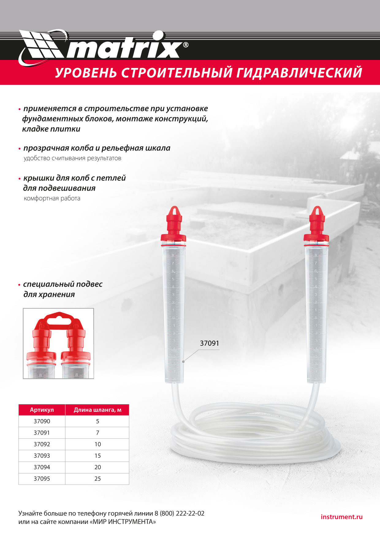 Гидроуровень,удлиненная колба, рельефная градуировка, 25м Matrix в Москве