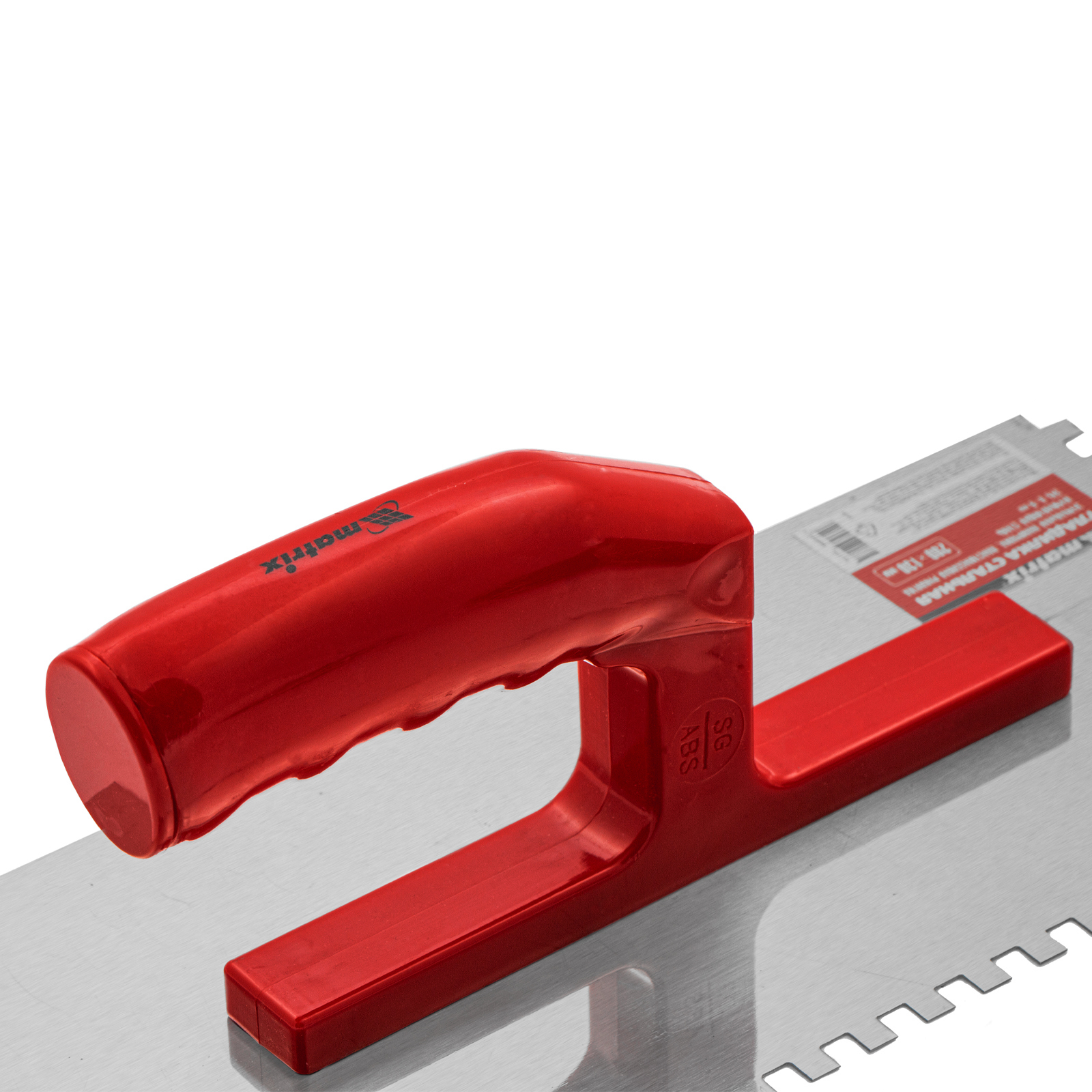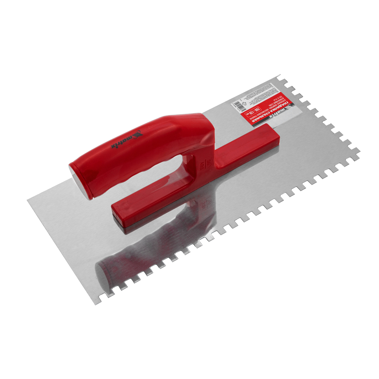 Гладилка из нержавеющей стали, 280 х 130 мм, зеркальная полировка, пластмассовая ручка, зуб 6 х 6 мм Matrix в Москве