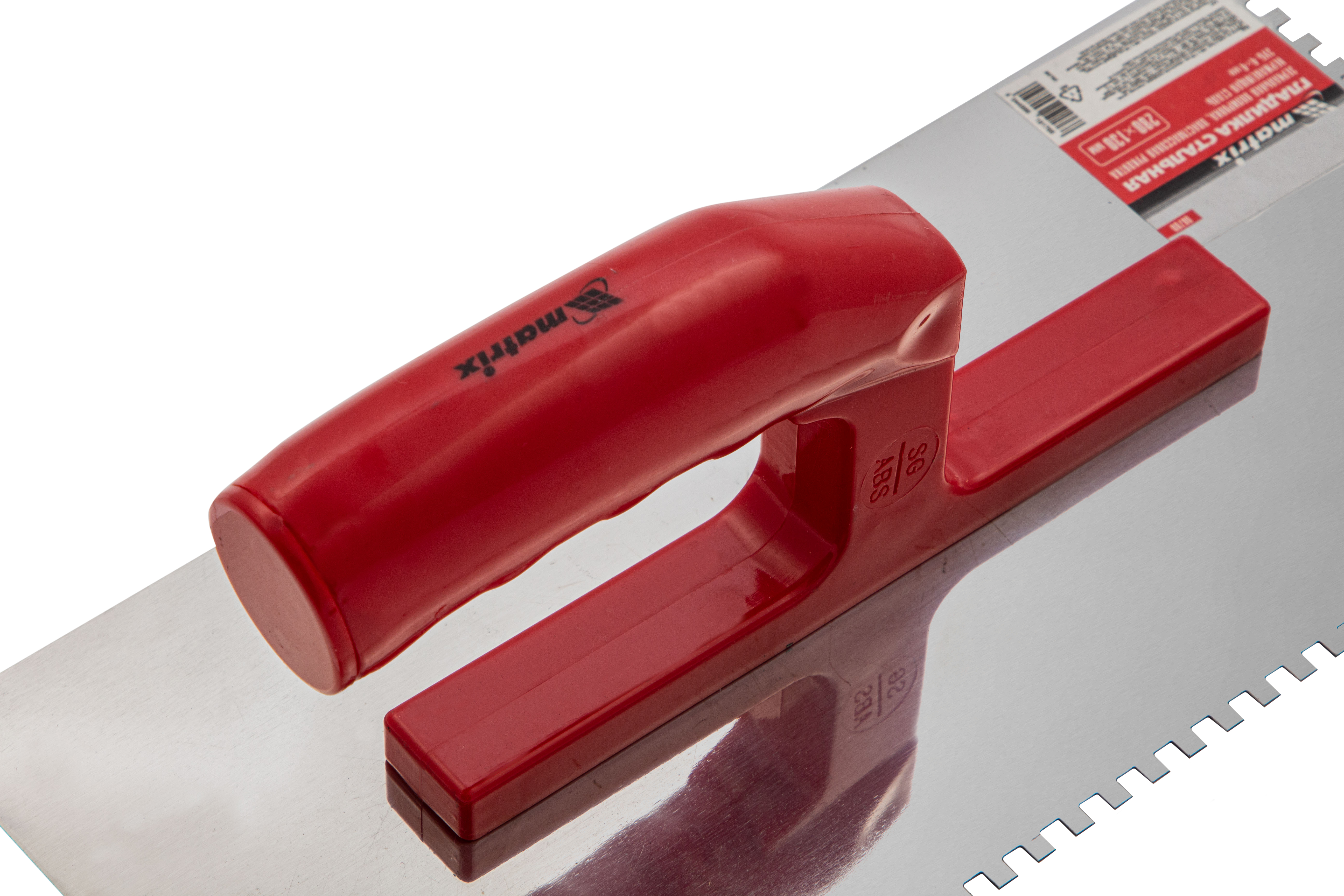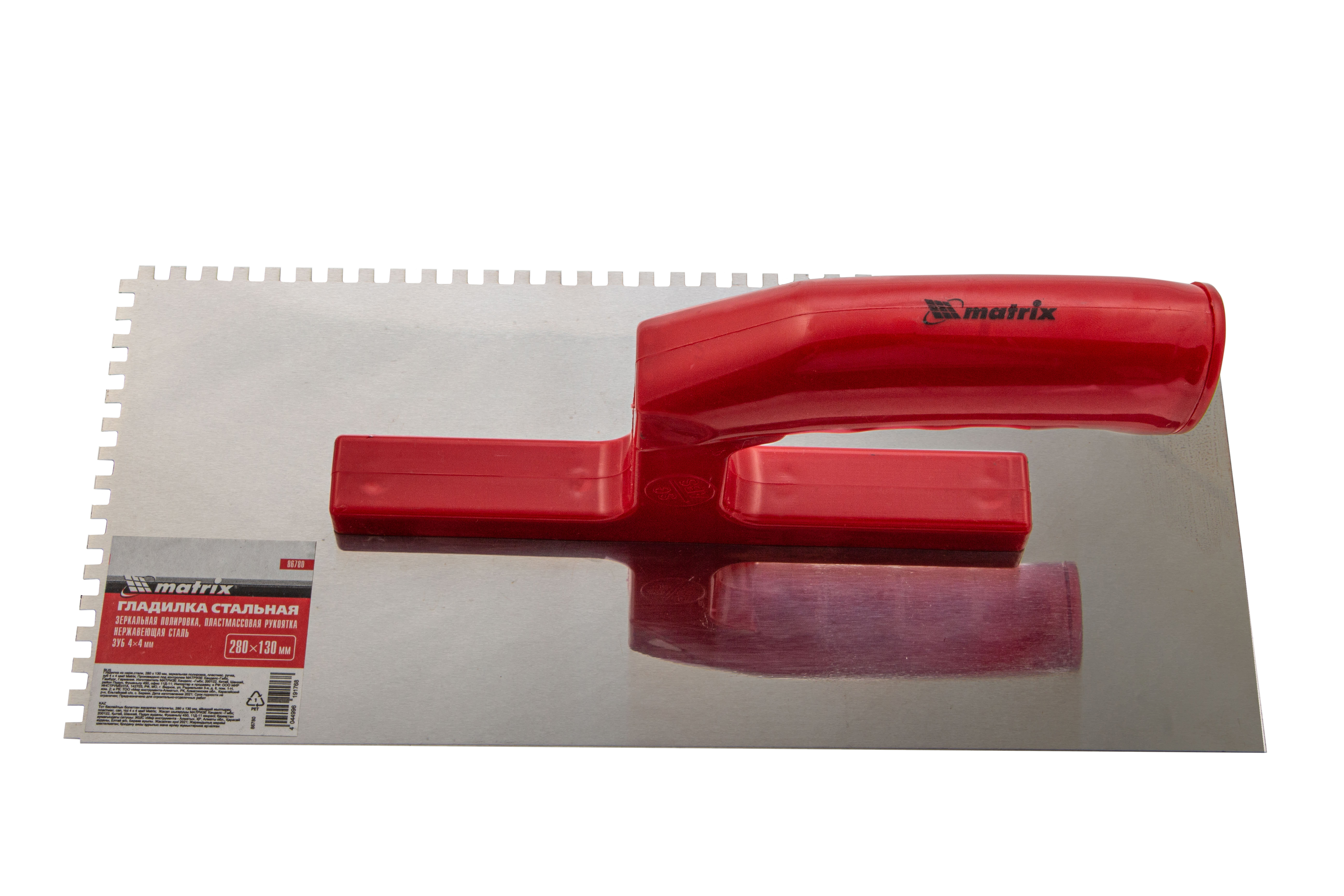 Гладилка из нержавеющей стали, 280 х 130 мм, зеркальная полировка, пластмассовая ручка, зуб 4 х 4 мм Matrix в Москве