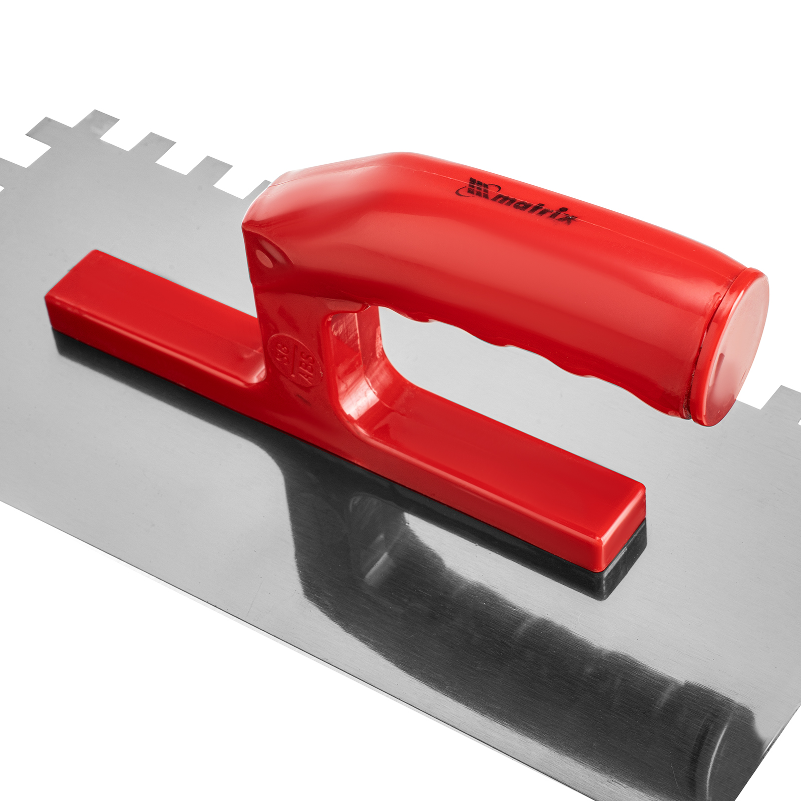 Гладилка стальная, 280 x 130 мм, зеркальная полировка, пластмастмассовая ручка, зуб 10 x 10 мм Matrix в Москве