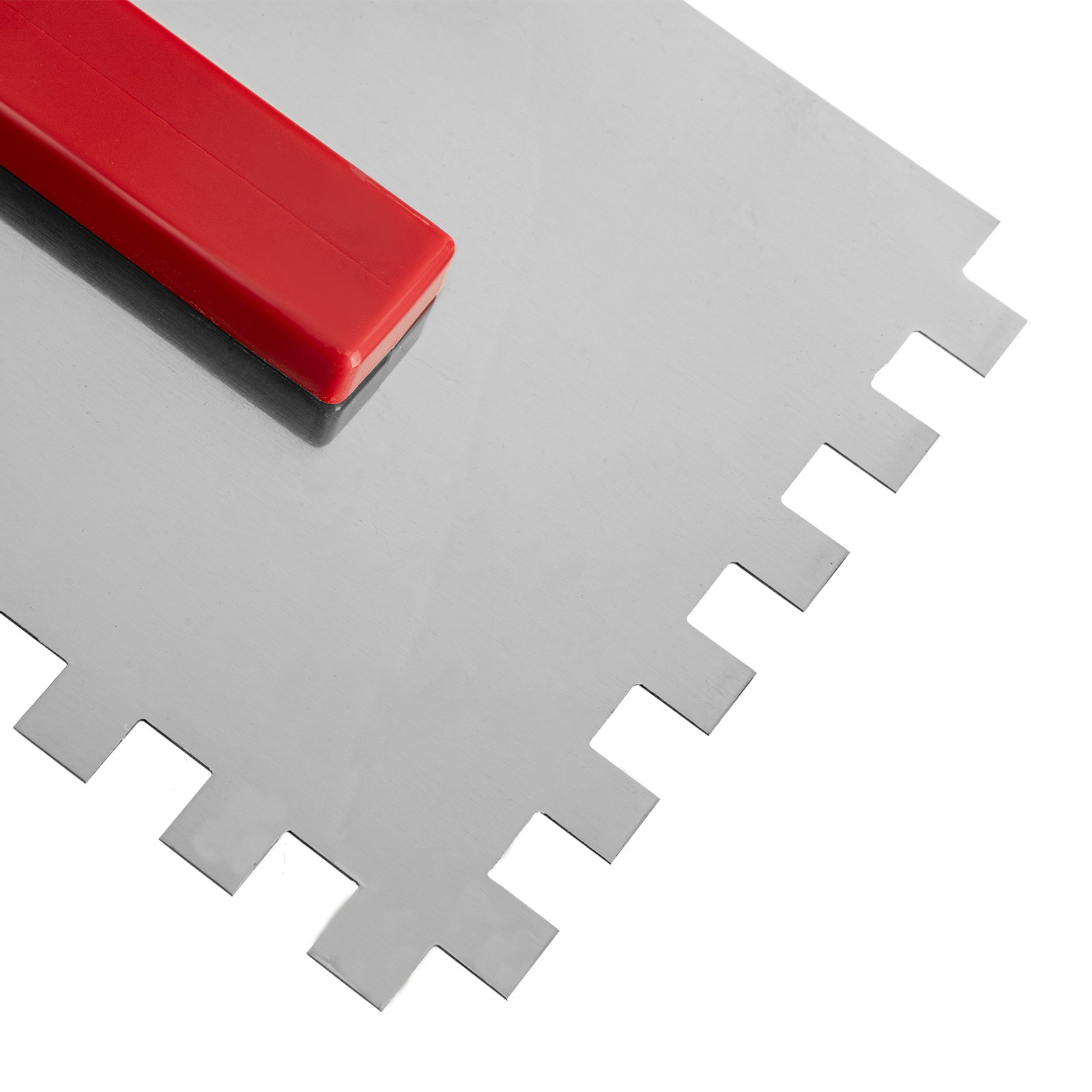 Стальная гладилка Matrix 86779 размером 280 x 130 мм, с зубьями 10 x 10 мм, зеркальной полировкой и пластмассовой ручкой, поможет ровно нанести штукатурку или строительный раствор. Зубчатые края гладилки обеспечивают правильное распределение плиточного клея для прочной фиксации плитки.