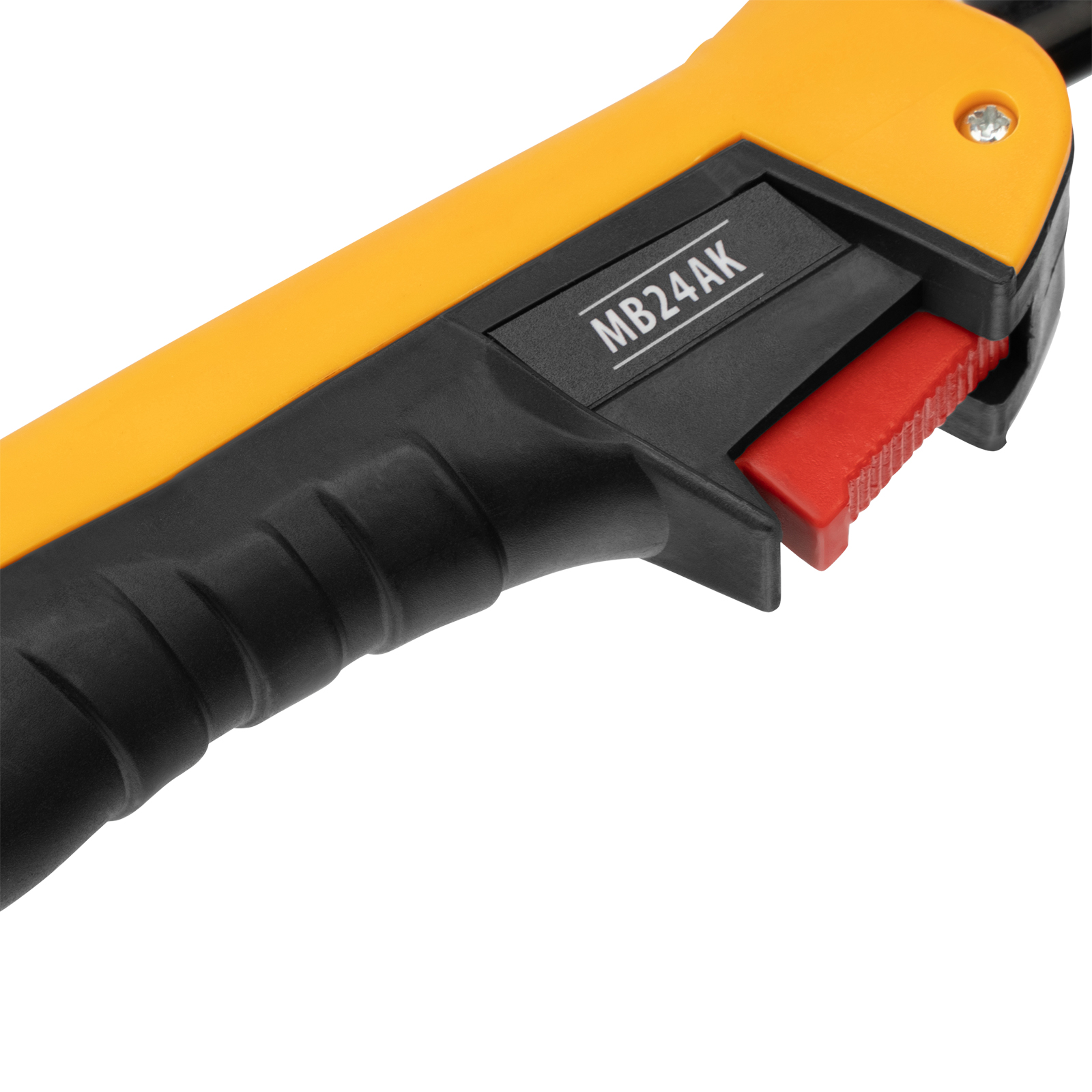 - Эргономичность — рукоятка с рельефной поверхностью удобно ложится в руку.