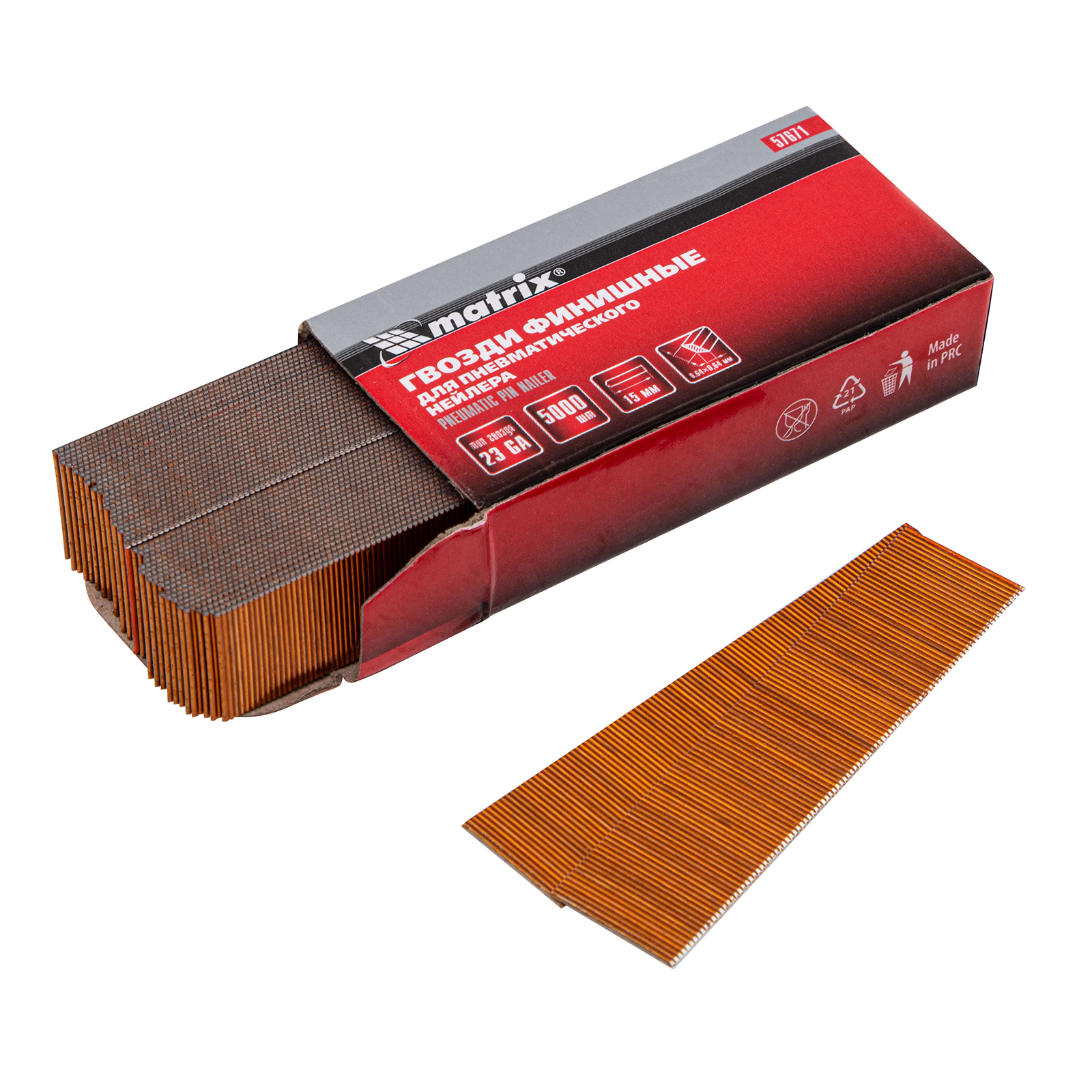 Гвозди финишные, (шпильки) 23GA для пневматического нейлера финишного D 0.64 мм, длина 15 мм, 5000 шт Matrix в Москве