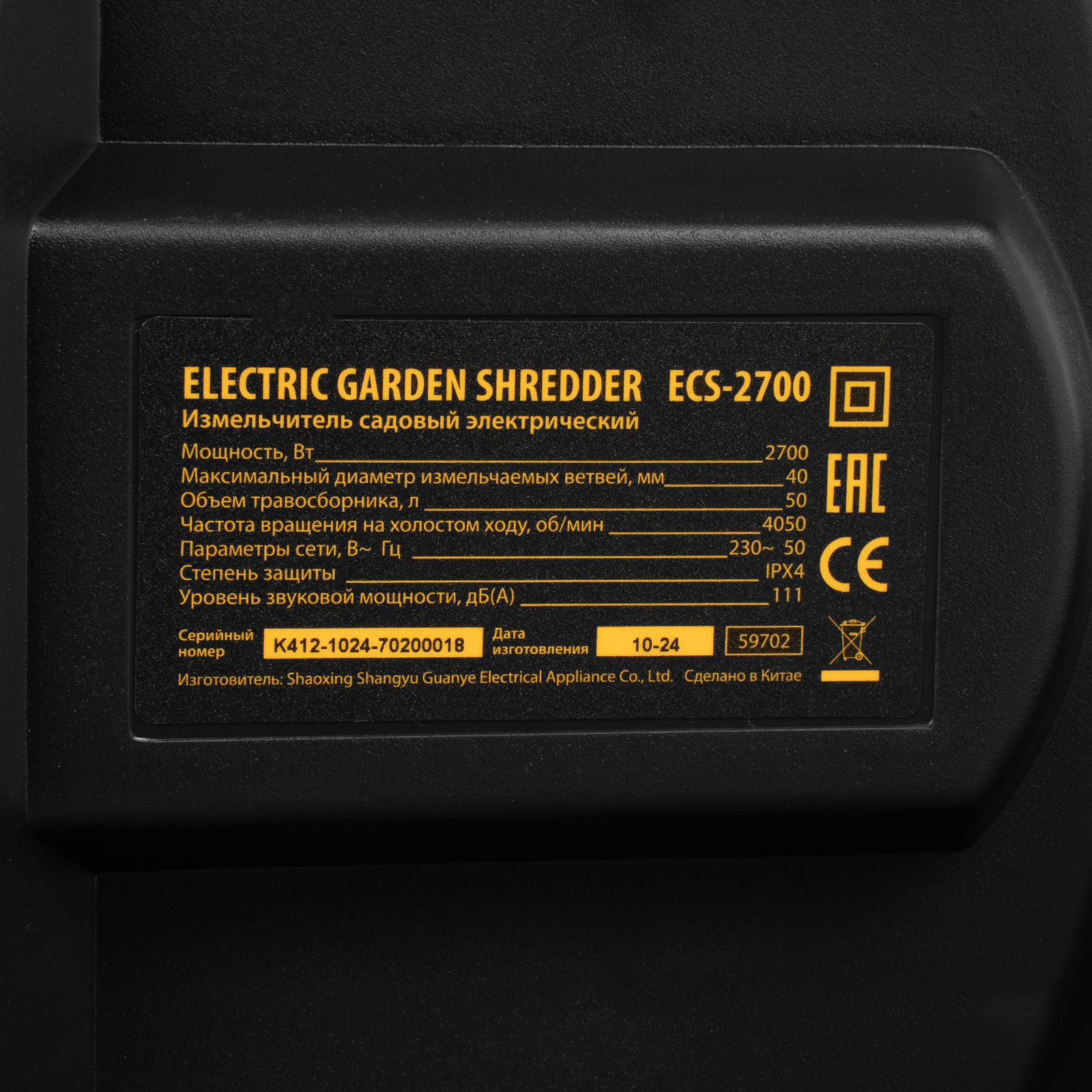 Измельчитель садовый электрический ECS-2700, 2700 Вт, 40 мм Denzel в Москве