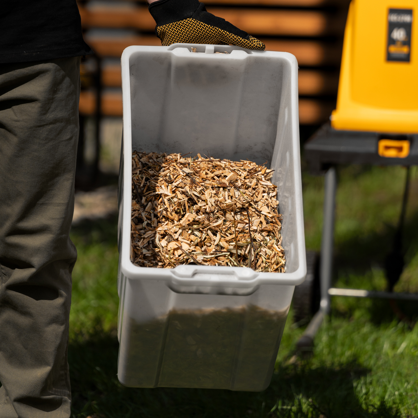 Измельчитель садовый электрический Denzel ECS-2700 59702 мощностью 2700 Вт предназначен для утилизации веток, листвы, скошенной растительности диаметром до 40 мм. Станет незаменимым помощником в саду или на даче, позволит поддерживать порядок на приусадебном участке. Скорость вращения режущих элементов составляет 4050 оборотов в минуту, что позволяет быстро решать поставленные задачи. Пластиковый травосборник объемом 50 л легко снимается для опорожнения.
